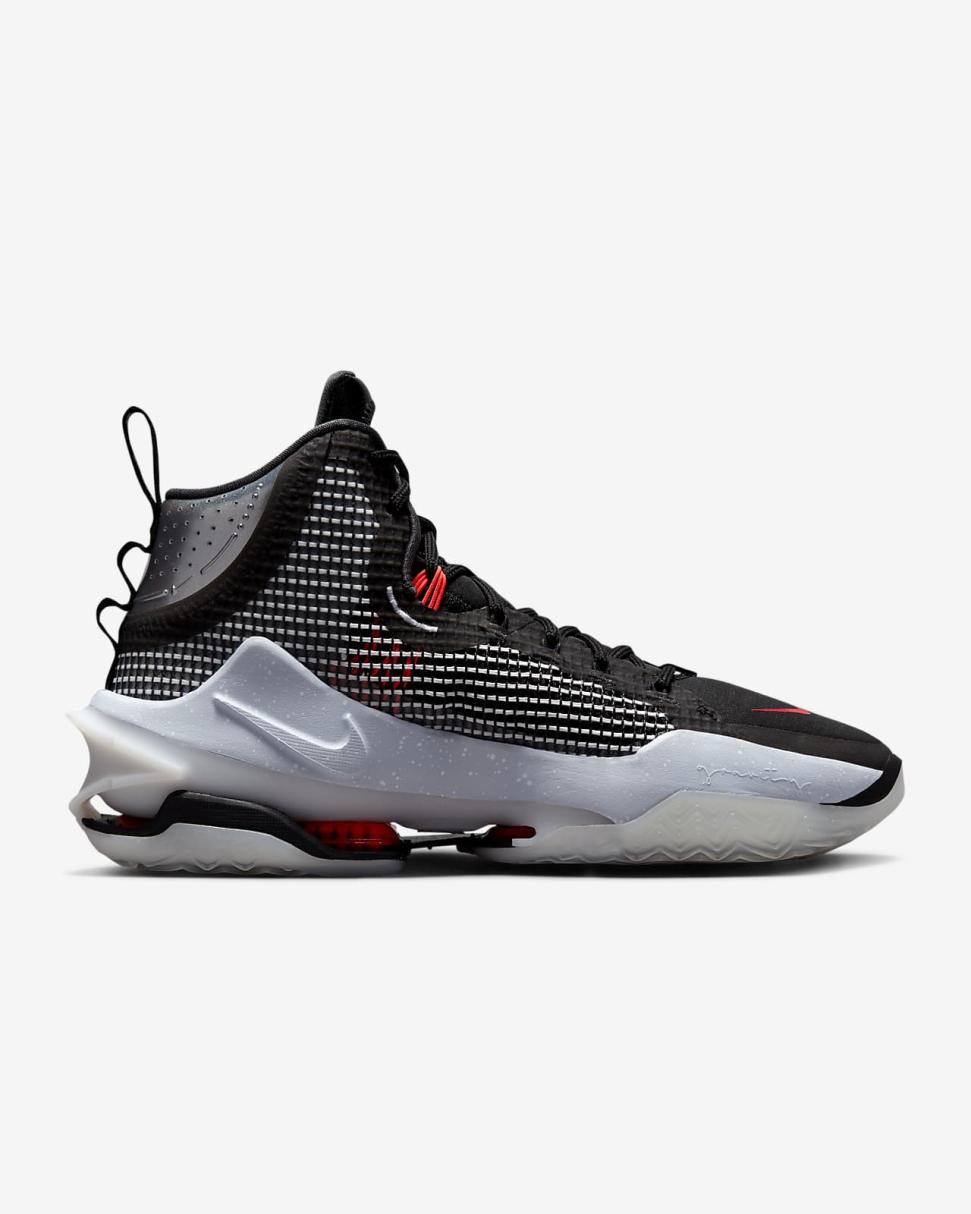 Feel like defying gravity? Meet one of Nike Basketball’s most responsive cushioning systems ever devised for game shoes. The double-stacked Zoom Air works in unison with an external jump frame made from PEBAX® that's lightweight, springy and strong. The woven exoskeleton-like upper helps you feel fully connected, so you can move with confidence and power and defeat the force that holds you down.