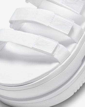 Lifted. Classic hoops detailing. Strappy but easy to wear. Check all the boxes in the Nike Icon Classic. Its big, bold midsole wows with comfort. The outsole pattern delivers iconic Air Force 1 vibes, while the multiple hook-and-loop straps add a fearless look. Get ready to shine with this new voice in sandal style.