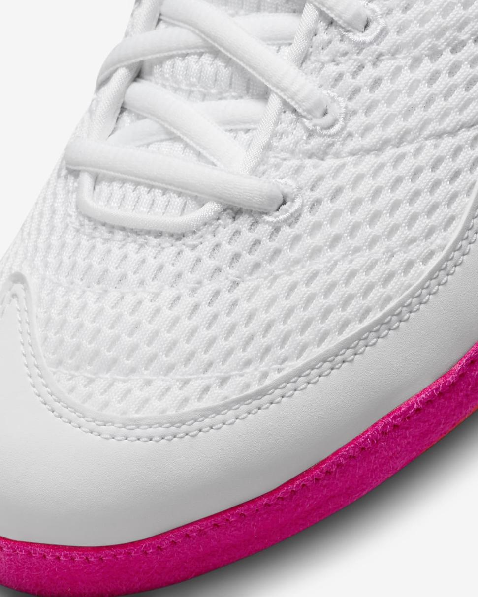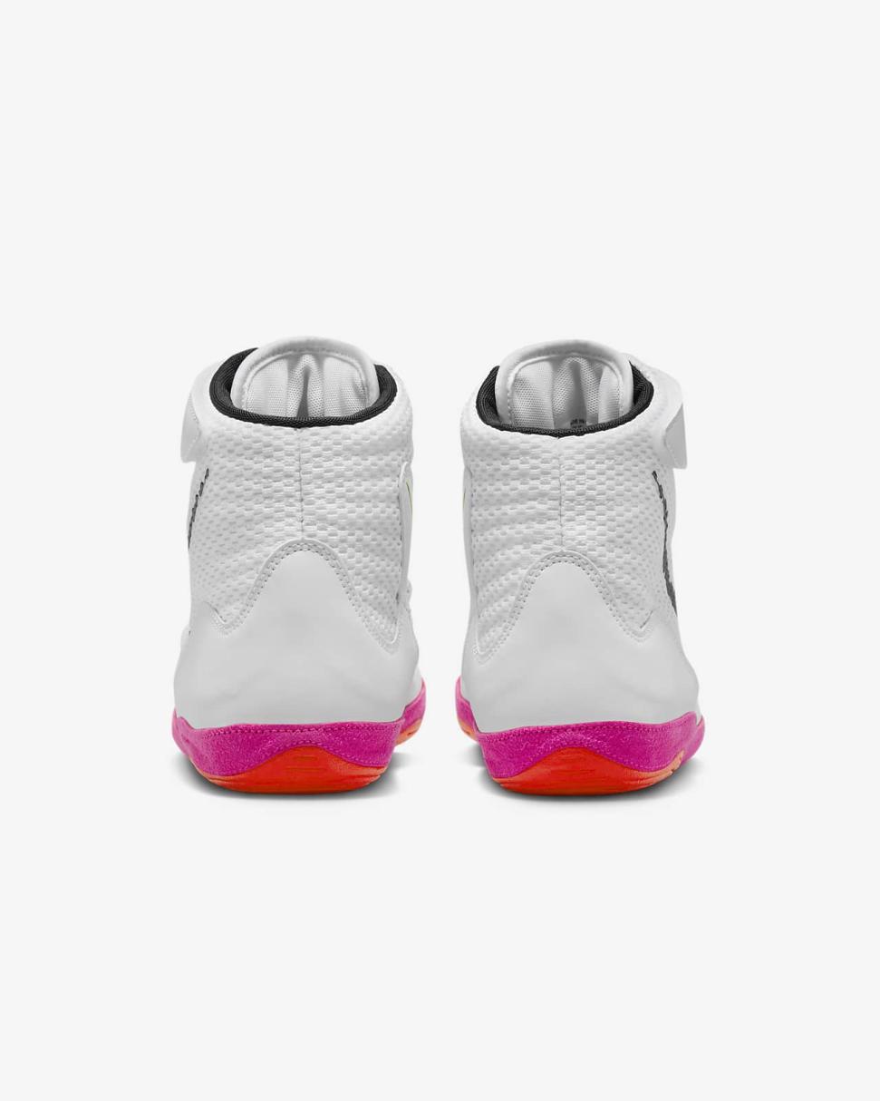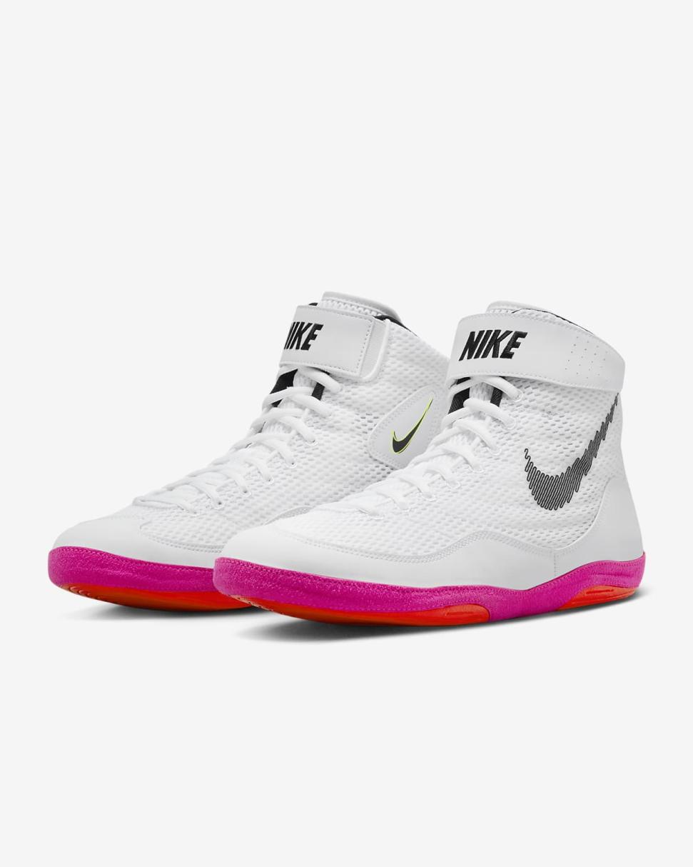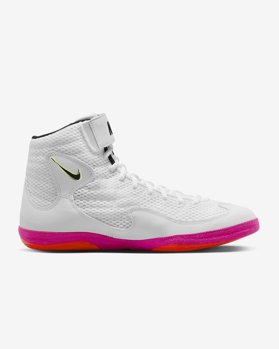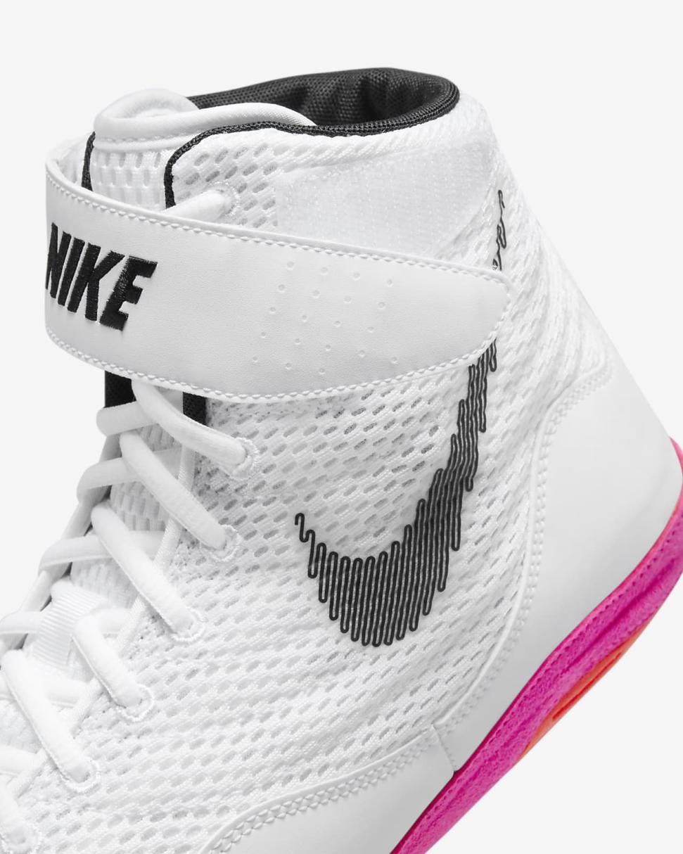 The Nike Inflict SE supports your moves on the mat with durable synthetic overlays down low and an adjustable ankle strap up top that helps secure your foot. Breathable mesh helps keep it cool through the heat of practice and your toughest matches. Rubber that wraps the sole gives you traction from all angles as you shoot and position yourself to dominate.