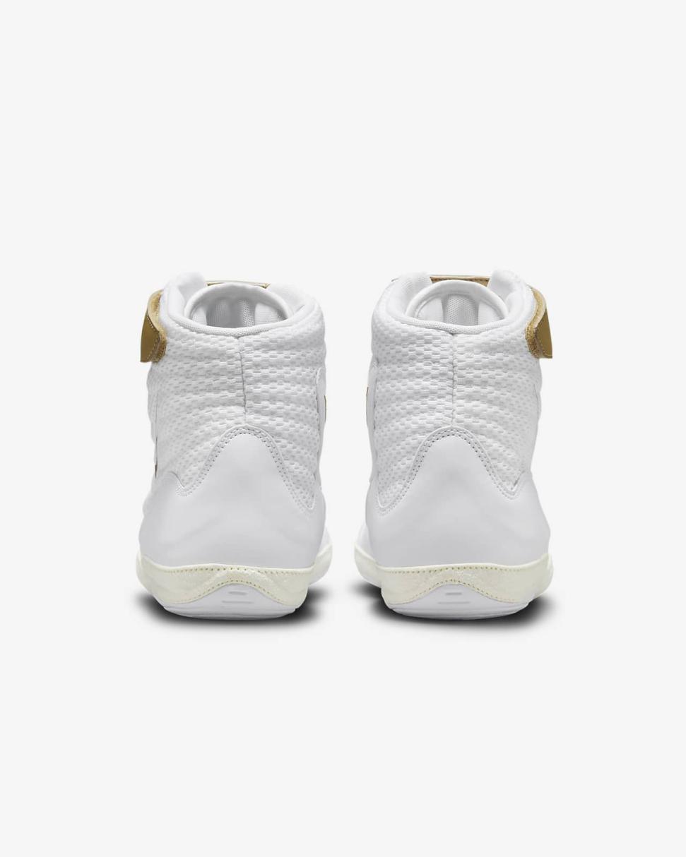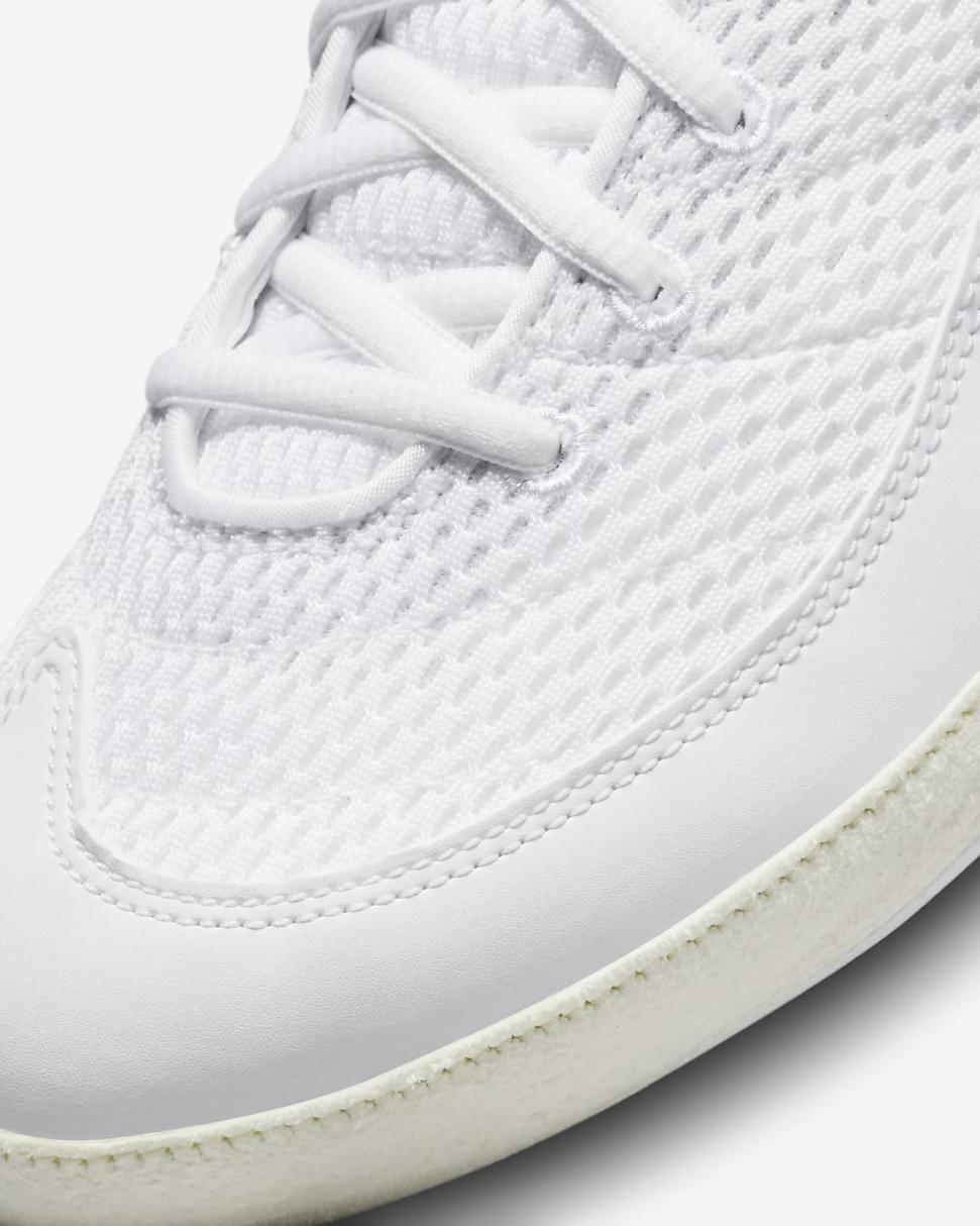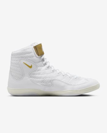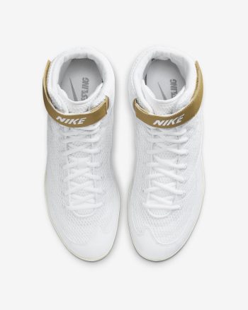 The Nike Inflict supports your moves on the mat with durable synthetic overlays down low and an adjustable ankle strap up top that helps secure your foot. Breathable mesh helps keep it cool through the heat of practice and your toughest matches. Rubber that wraps the sole gives you traction from all angles as you shoot and position yourself to dominate.