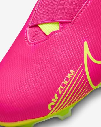 You've got the skills, you've got the game. Now show them off with the Nike Jr. soccer shoes. Pull tabs and dual straps combine for an easy-on design that eliminates the need for laces and helps get you on the pitch fast. But the best part? Zoom Air cushioning under the heel helps add bouncy comfort that lasts all throughout your game.