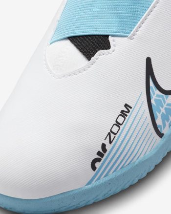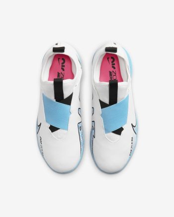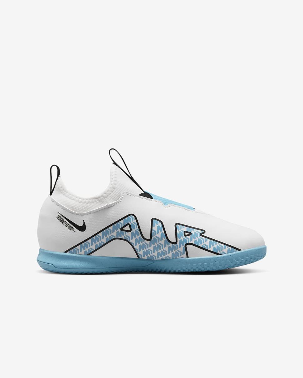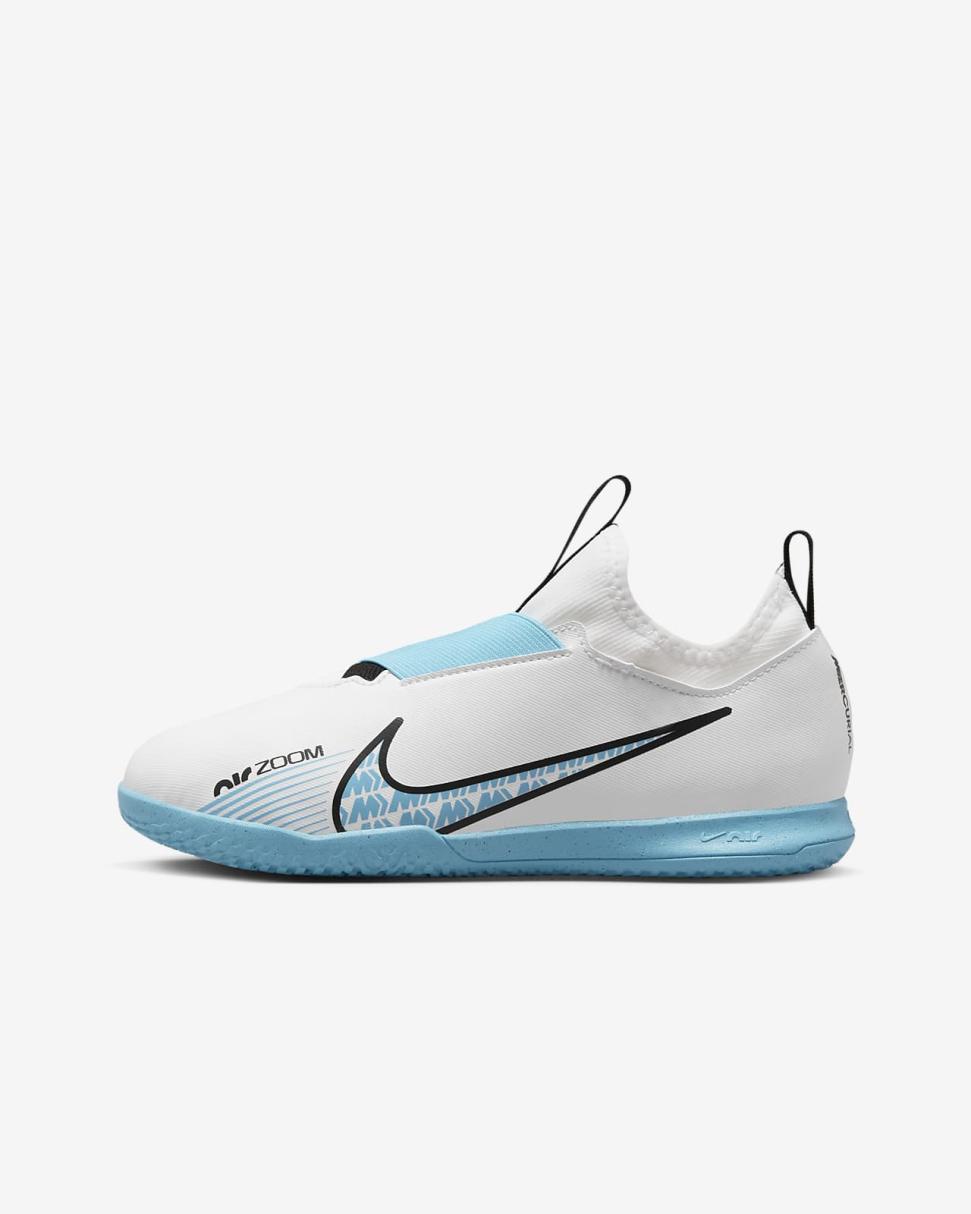 You've got the skills, you've got the game. Now show them off with the Nike Jr. soccer shoes. Pull tabs and dual straps combine for an easy-on design that eliminates the need for laces and helps get you on the pitch faster. Zoom Air cushioning under the heel adds bouncy comfort that lasts all throughout your game.