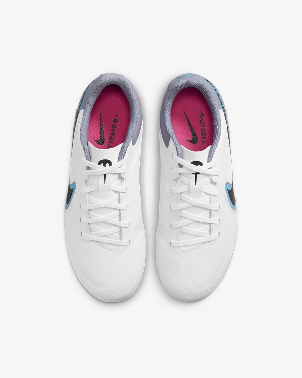 1 of our lightest Tiempos to date, the Nike Jr. Tiempo Legend 9 Academy MG lets you go on the offensive with a low-profile design that's reinvented for attackers. The upper has raised textures backed by soft foam pods for precise dribbling, passing and shooting, while studs on the bottom provide traction for quick cuts and sudden stops.