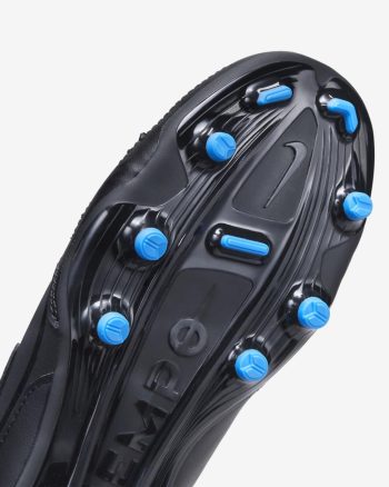 The Nike Jr. Tiempo Legend 9 Club MG is a low-profile design that's reinvented for fast play. The upper features raised areas throughout the strike zone for precise dribbling, passing and shooting, while studs on the bottom provide traction for quick cuts and sudden stops.