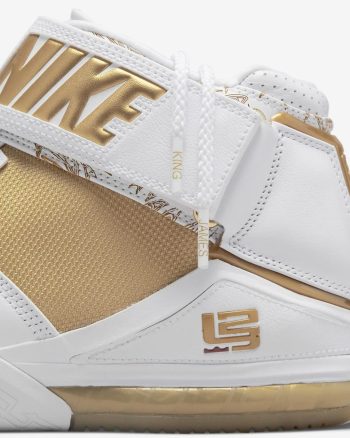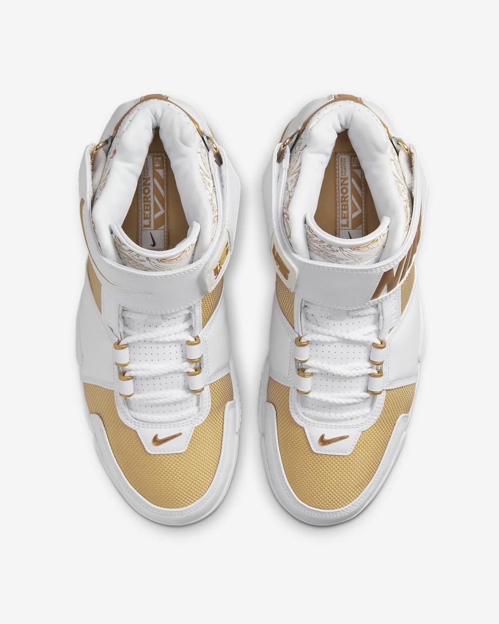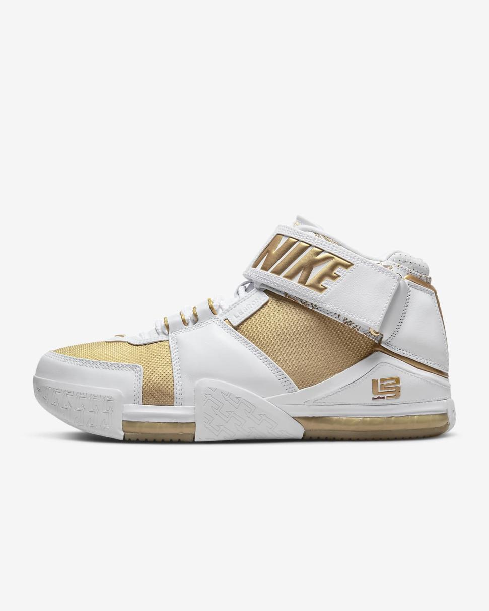 What's better than that glass slipper story? This legendary LeBron 2 reissue. Rarity no more, one of the all-time most coveted kicks is now yours for the taking. Straight from the vault, this player exclusive sent a ripple of envy through shoe fanatics everywhere when it was first seen during an '06 preseason exhibition game. Metallic gold and white set the backdrop while laser-etched graphics (a first for Nike Basketball), ballistic fabric on the sides, and crisp leather deliver an in-your-face fairy-tale ending.