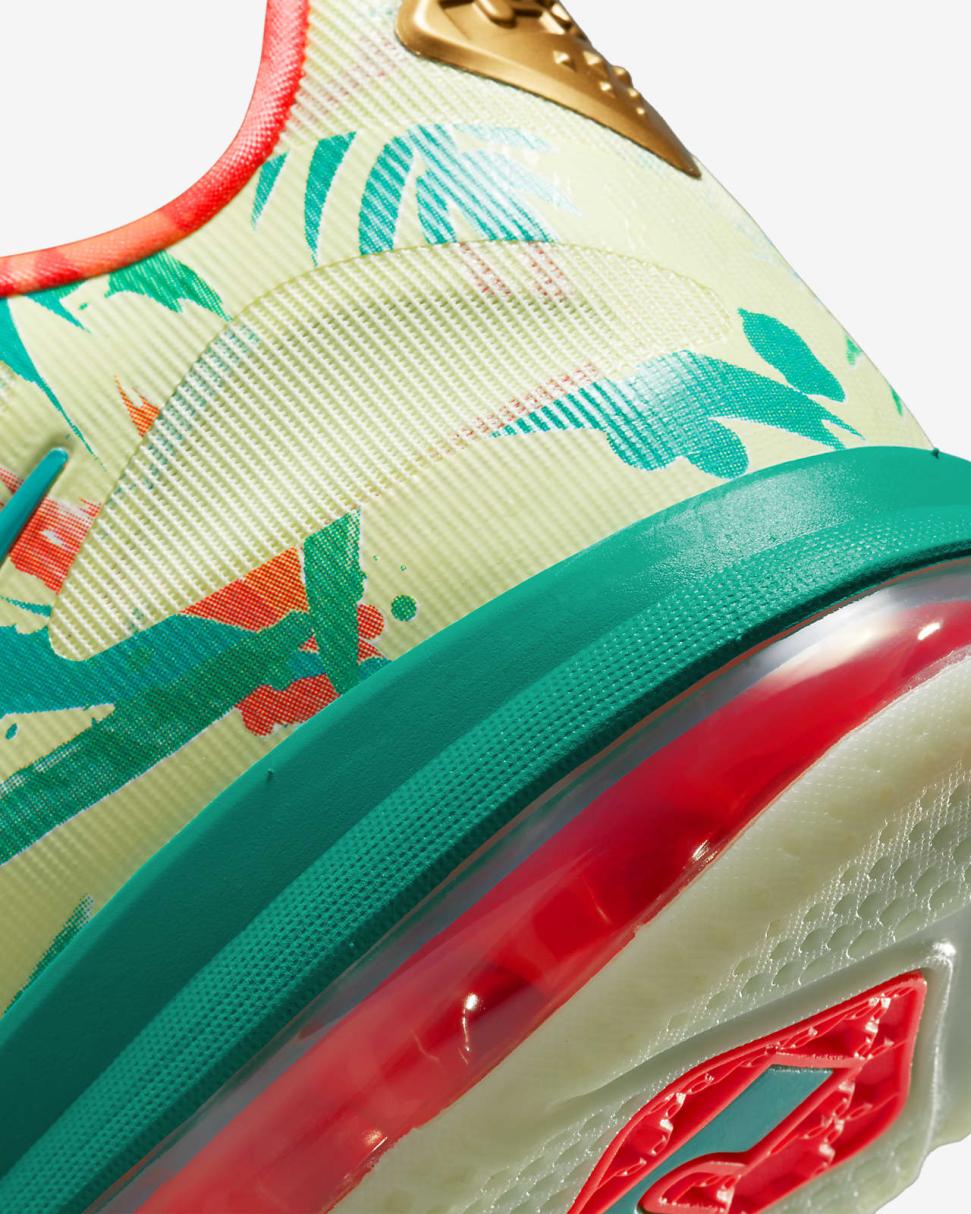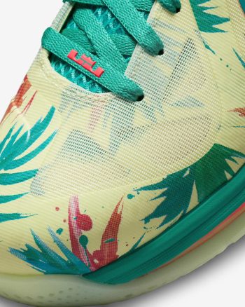 With its vibrant, tropical theme, this LeBron brings a fresh twist to the classic, thirst-quenching combination of iced tea and lemonade. Celebrating the famed refreshment, it mixes fresh colors, airy materials and lavish ornamental graphics fit for a king. Drink it up with your eyes while you give your feet a vacation.