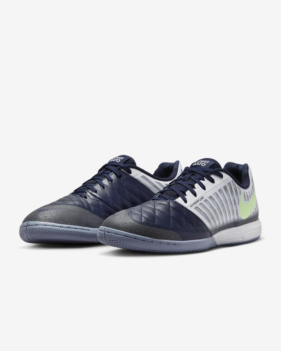 The Nike Lunar Gato II is ideal for the small-sided game. Soft leather at the forefoot has a smooth, natural feel for precision strikes. Lunarlon cushioning feels springy and responsive, while rubber tread gives you traction for quick cuts on indoor surfaces.