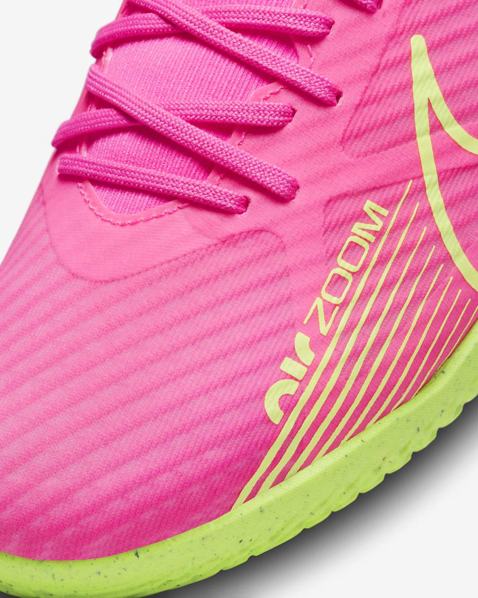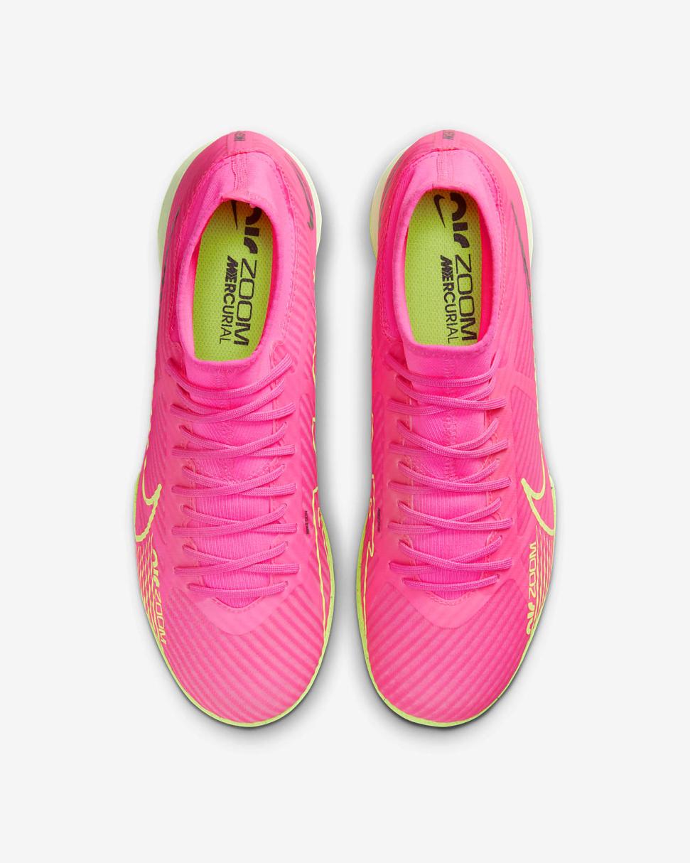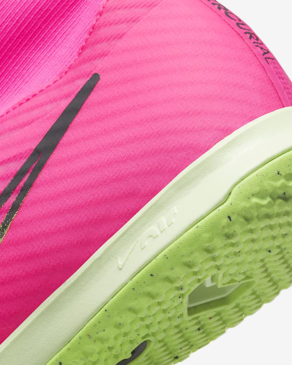 Instantly tilt the field in the bold design of the Superfly 9 Academy IC. It's loaded with a Zoom Air unit and flexible NikeSkin up top for exceptional touch, so you can dominate in the waning minutes of a match—when it matters most. Fast is in the Air.
