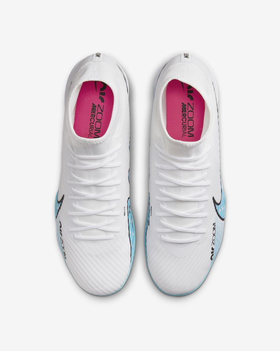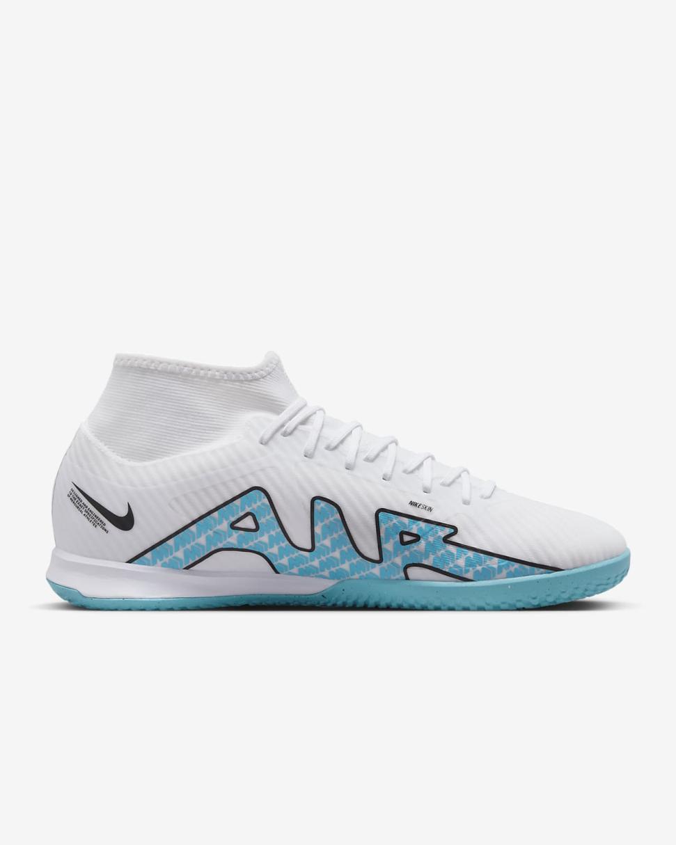 Instantly tilt the field in the bold design of the Superfly 9 Academy IC. It's loaded with a Zoom Air unit and flexible NikeSkin up top for exceptional touch, so you can dominate in the waning minutes of a match—when it matters most. Fast is in the Air.