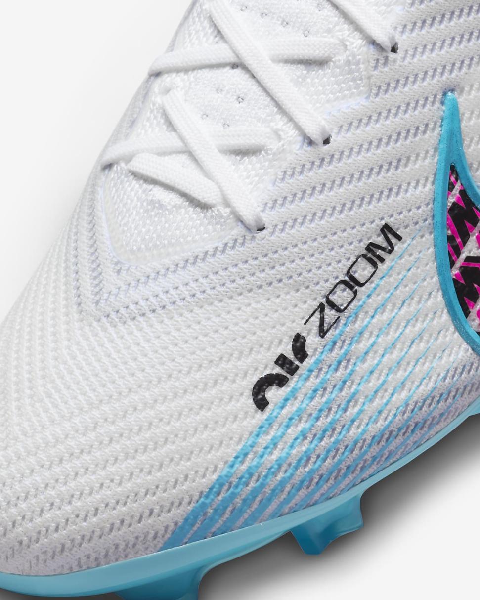 Instantly tilt the field in the bold design of the Superfly 9 Elite FG. We added a Zoom Air unit, made specifically for soccer, and grippy texture up top for exceptional touch, so you can dominate in the waning minutes of a match—when it matters most. Feel the explosive speed as you race around the field, making the critical plays with velocity and pace. Fast is in the Air.