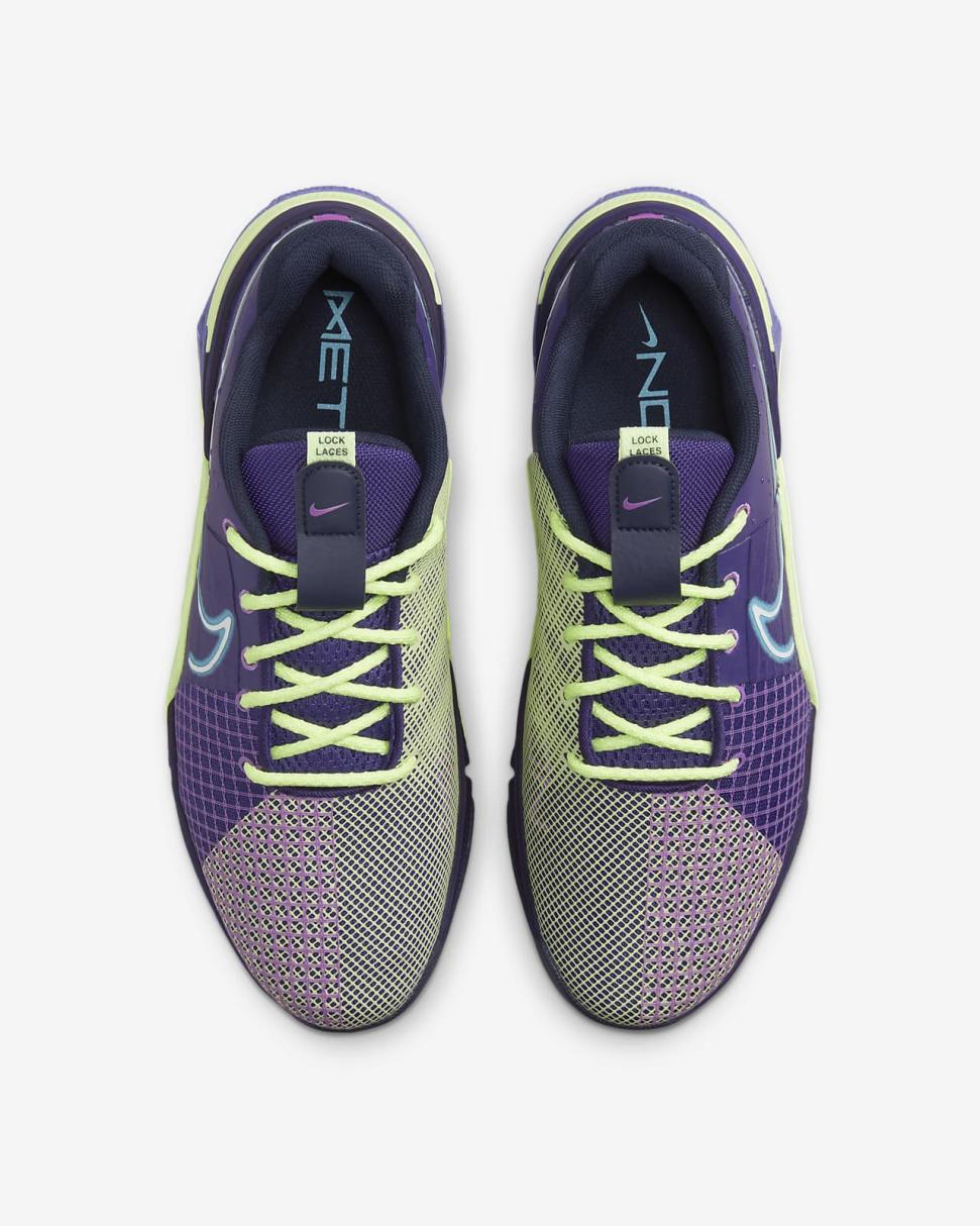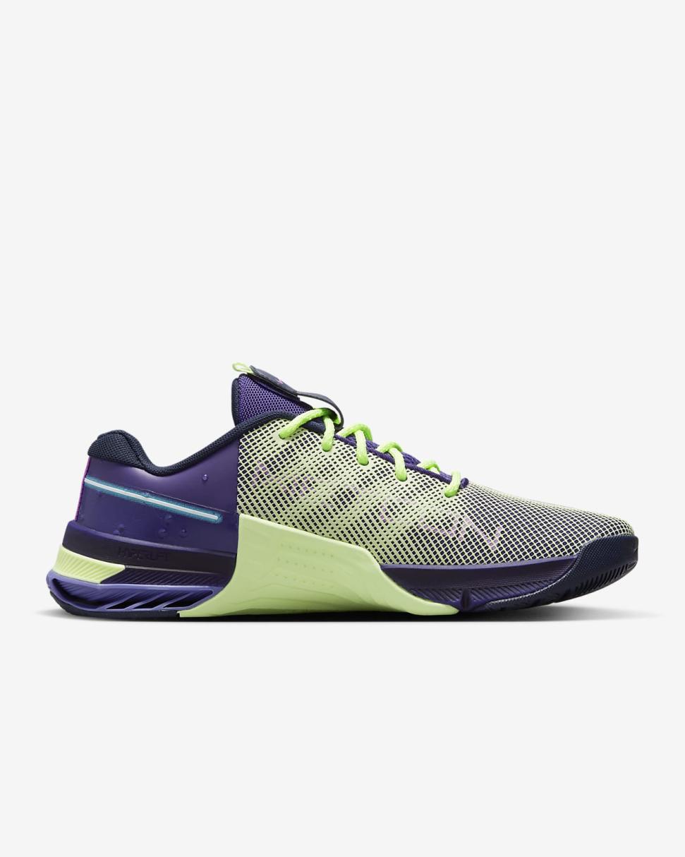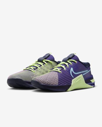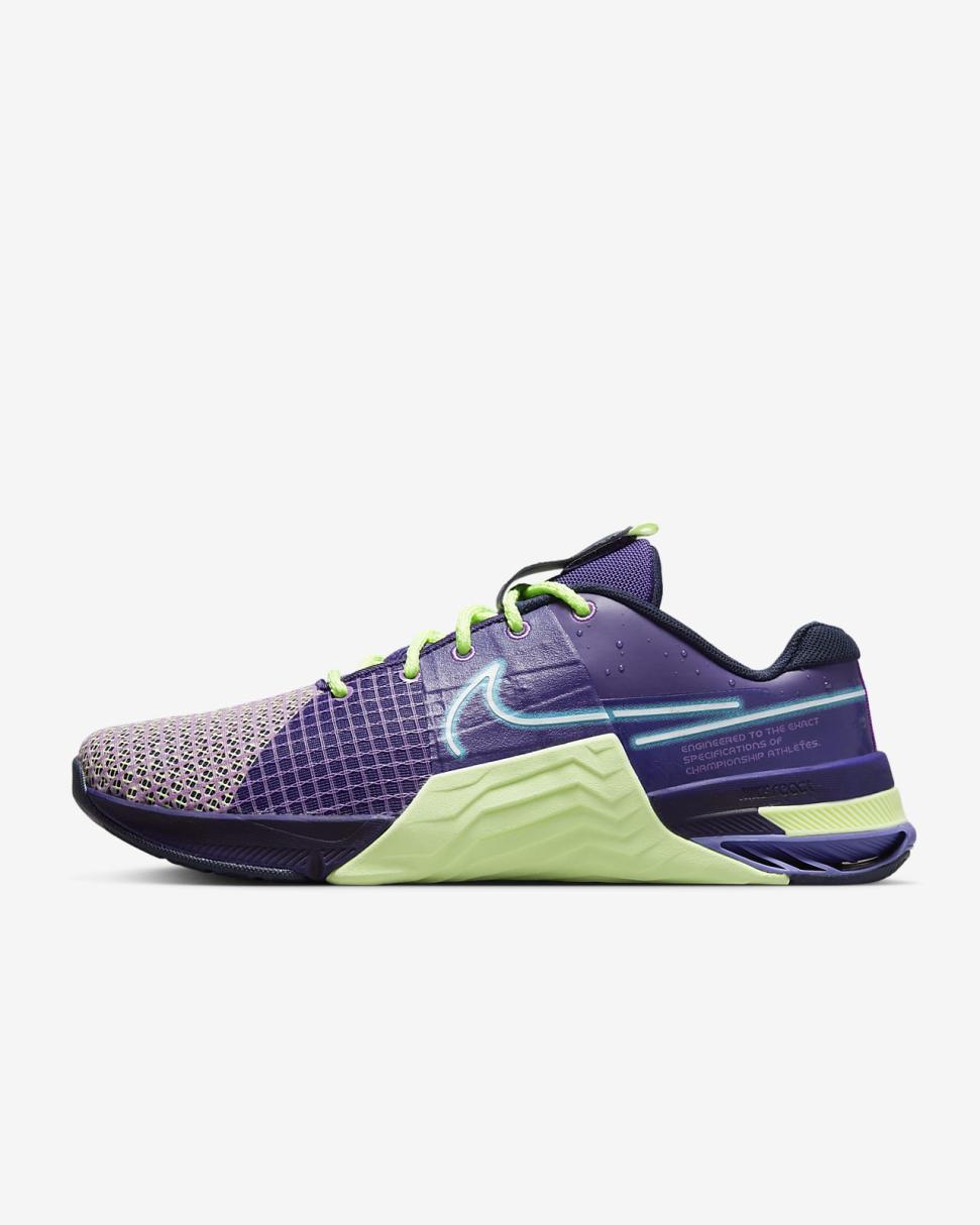 Turn your workout into a party in this special Nike Metcon 8 AMP. Pulsating purples and vibrating neon yellows are fit for pumping your fist to the beat between sets or using that electric pairing as inspiration to find 1 more rep. The upper is lighter and more breathable than our previous edition to complement our standards of durability and comfort, so that you can float through your cardio and power through your lifts.