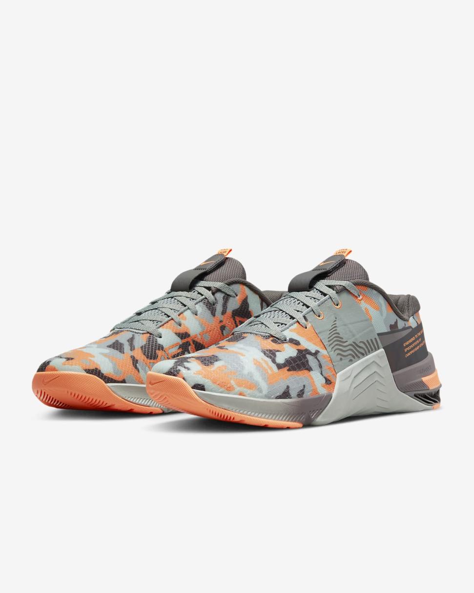 You chase the clock, challenging and encouraging each other all in the name of achieving goals and making gains. Our go-to model for training relies on a lighter, more breathable upper than our previous edition to complement our standards of durability and comfort, so that you can float through your cardio, power through your lifts and dominate your workouts. This Metcon 8 AMP helps you stay under the radar with smoky camouflage colors that lets others boast and chitchat while you bear down and get the workout done.