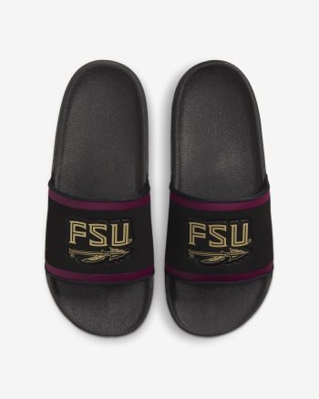 Cheer your team to victory in comfort with the Nike Offcourt (Florida State) Slide. A cushy synthetic leather strap features your team’s logo, while an innovative foam midsole makes this slide so comfy, you’ll never want to take it off.