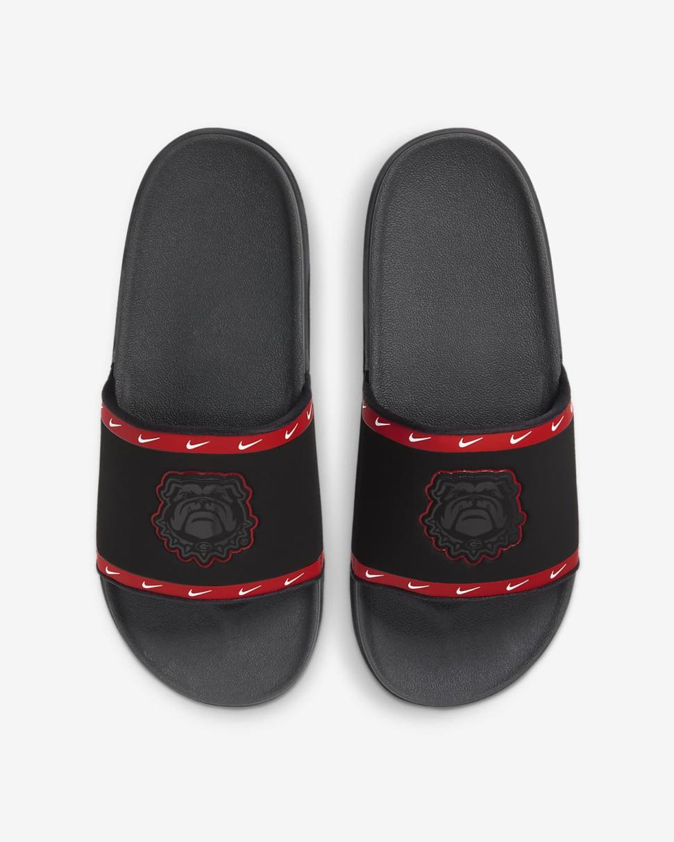 Cheer your team to victory in comfort with the Nike Offcourt (Georgia) Slide. A cushy synthetic leather strap features your team’s logo, while an innovative foam midsole makes this slide so comfy, you’ll never want to take it off.