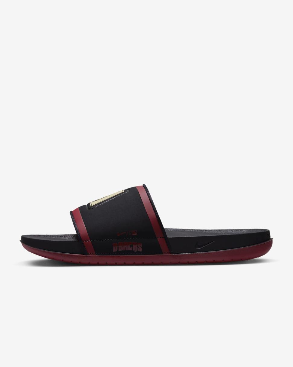 Cheer your team to victory in comfort with the Nike Offcourt (MLB Arizona Diamondbacks) Slide. A cushy synthetic leather strap features your team’s logo, while an innovative foam midsole makes this slide so comfy, you’ll never want to take it off.