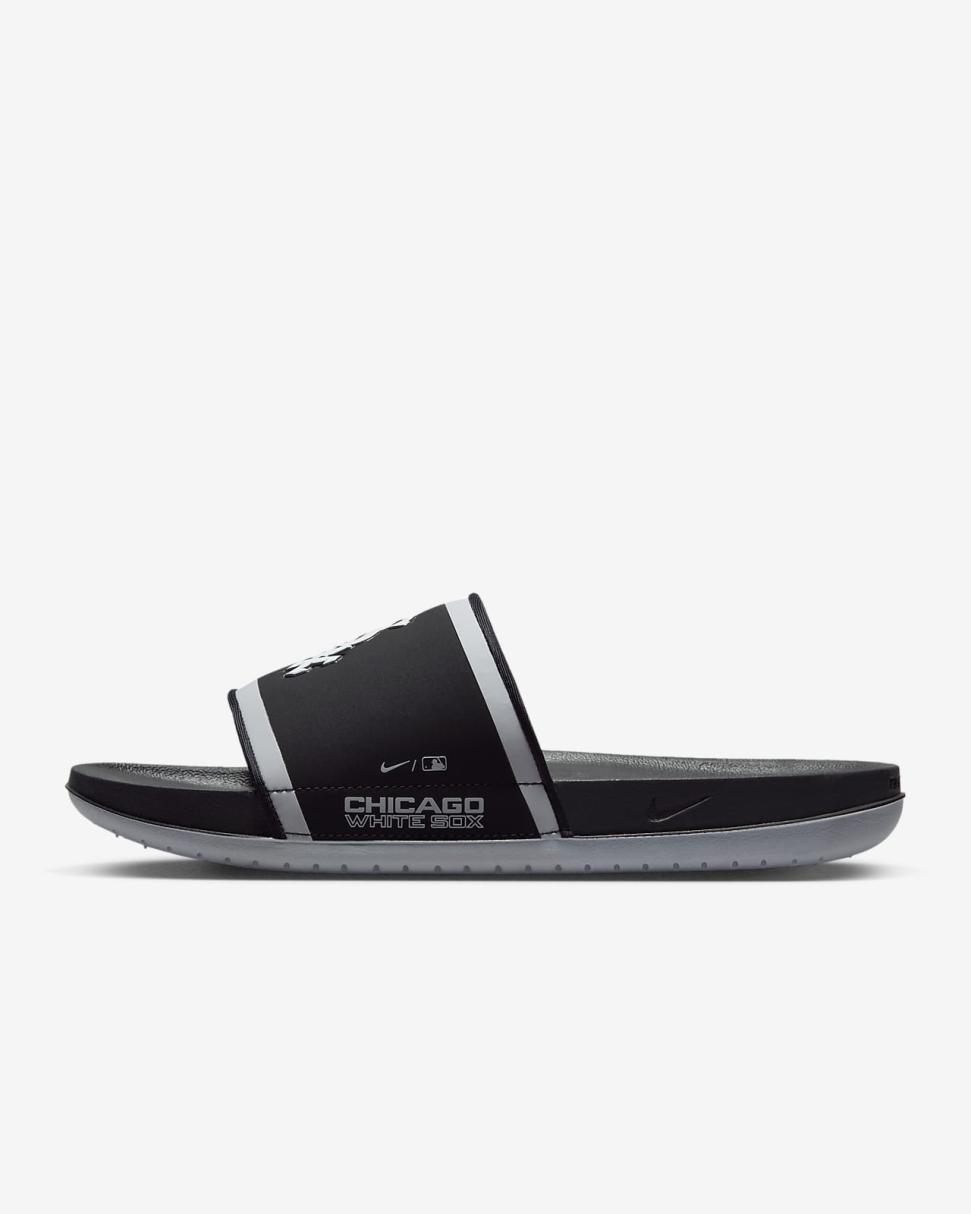 Cheer your team to victory in comfort with the Nike Offcourt (MLB Chicago White Sox) Slide. A cushy synthetic leather strap features your team’s logo, while an innovative foam midsole makes this slide so comfy, you’ll never want to take it off.