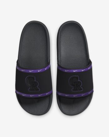 Cheer your team to victory in comfort with the Nike Offcourt (MLB Colorado Rockies) Slide. A cushy synthetic leather strap features your team’s logo, while an innovative foam midsole makes this slide so comfy, you’ll never want to take it off.
