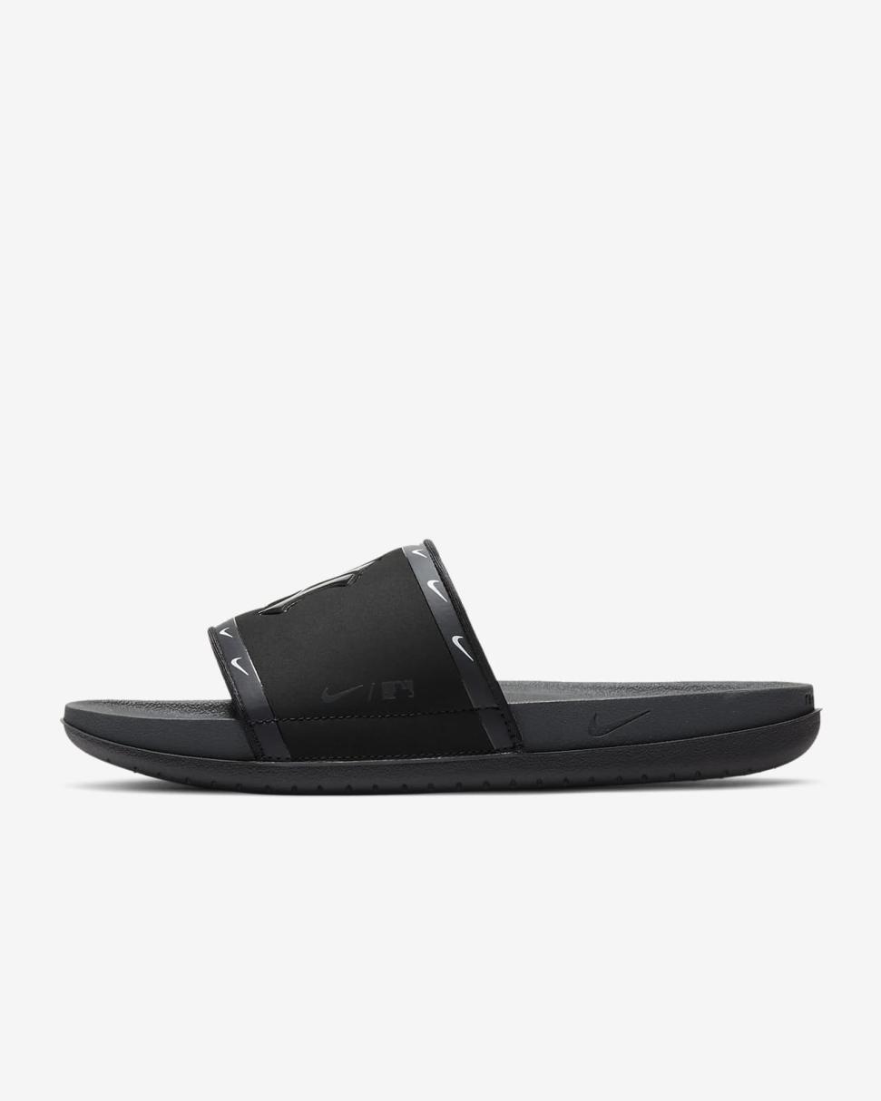 Cheer your team to victory in comfort with the Nike Offcourt (MLB New York Yankees) Slide. A cushy synthetic leather strap features your team’s logo, while an innovative foam midsole makes this slide so comfy, you’ll never want to take it off.
