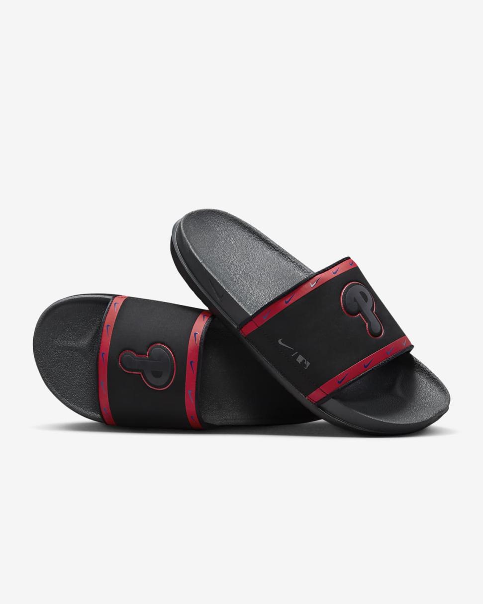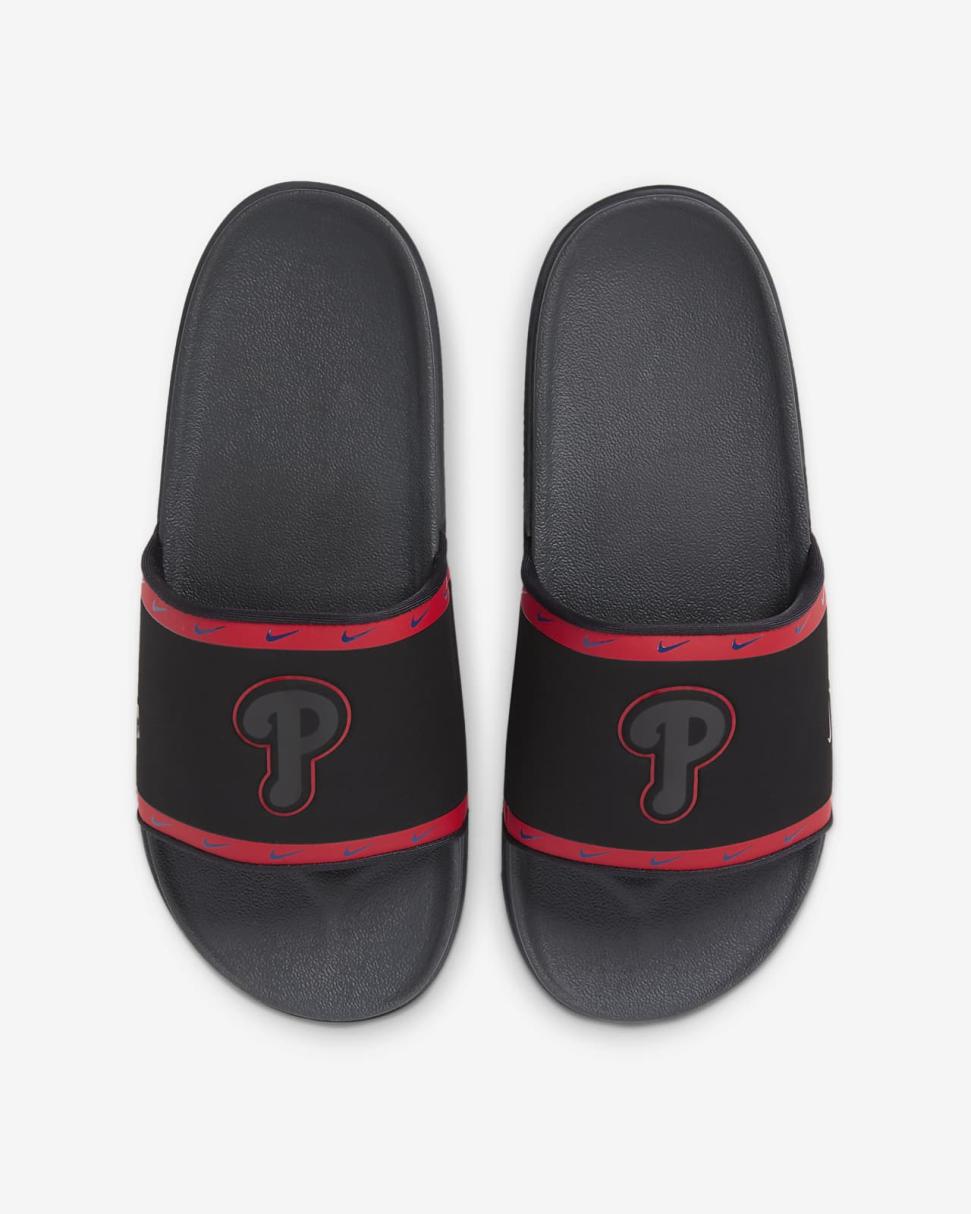 Cheer your team to victory in comfort with the Nike Offcourt (MLB Philadelphia Phillies) Slide. A cushy synthetic leather strap features your team’s logo, while an innovative foam midsole makes this slide so comfy, you’ll never want to take it off.