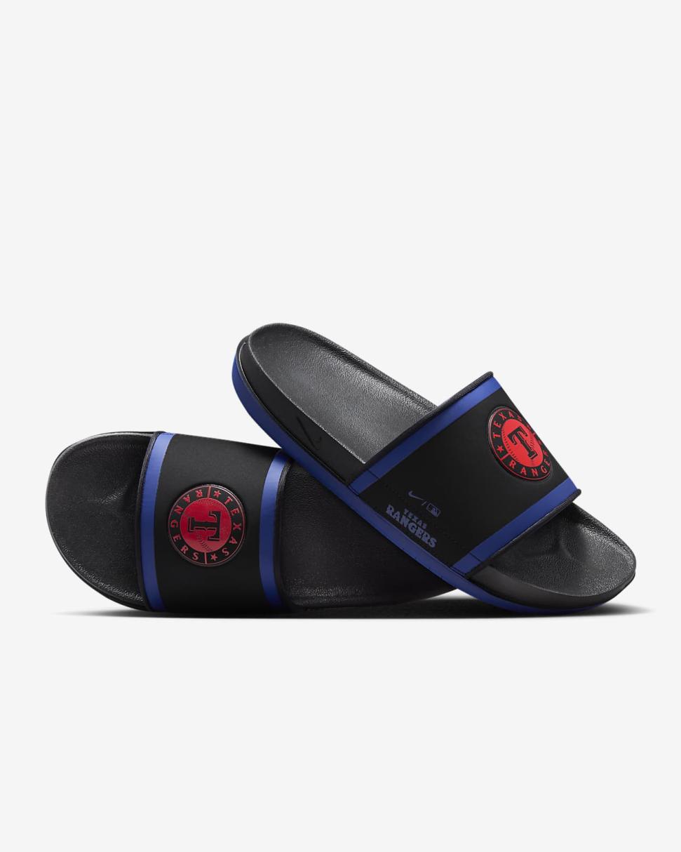 Cheer your team to victory in comfort with the Nike Offcourt (MLB Texas Rangers) Slide. A cushy synthetic leather strap features your team’s logo, while an innovative foam midsole makes this slide so comfy, you’ll never want to take it off.
