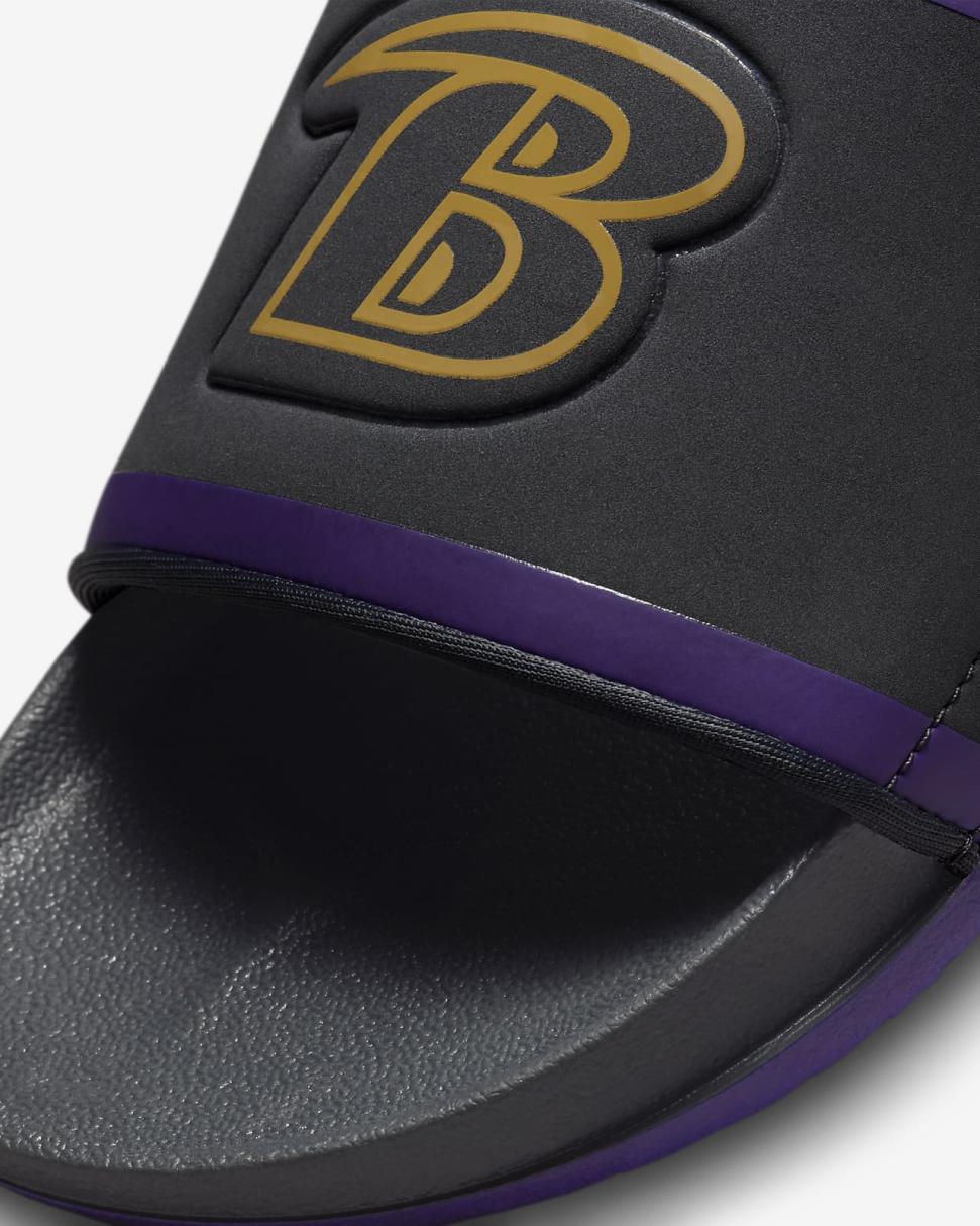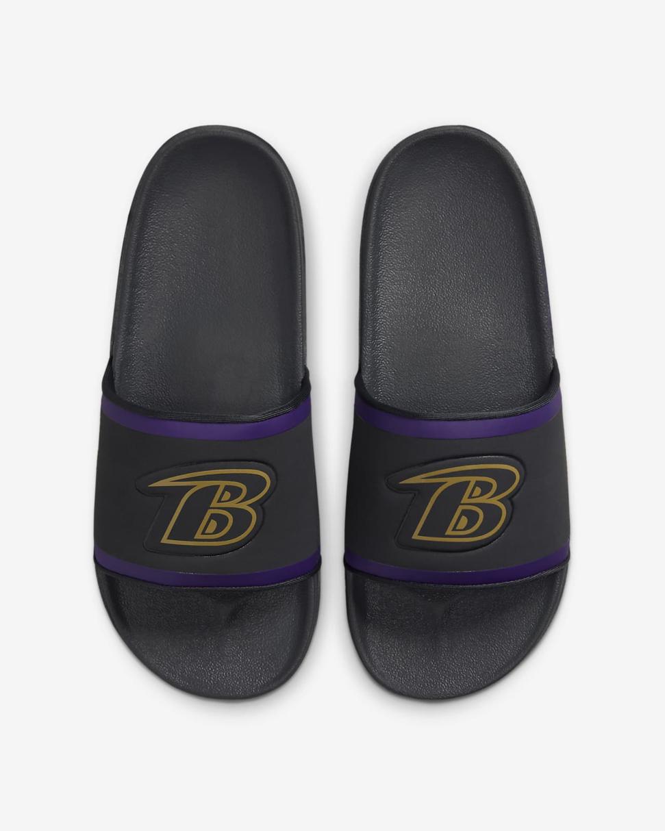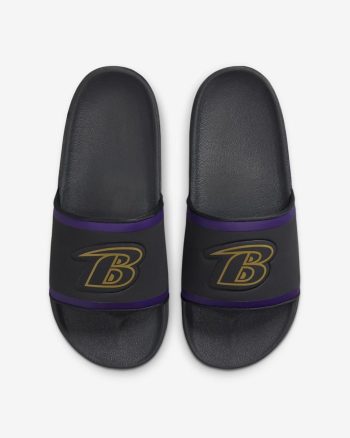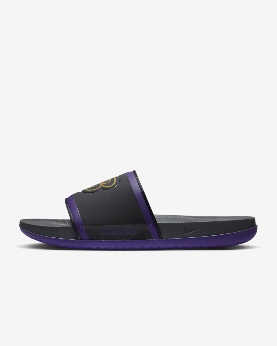 Cheer your team to victory in comfort with the Nike Offcourt (NFL Baltimore Ravens) Slide. A cushy synthetic leather strap features your team’s logo, while an innovative foam midsole makes this slide so comfy, you’ll never want to take it off.