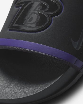 Cheer your team to victory in comfort with the Nike Offcourt (NFL Baltimore Ravens) Slide. A cushy synthetic leather strap features your team’s logo, while an innovative foam midsole makes this slide so comfy, you’ll never want to take it off.