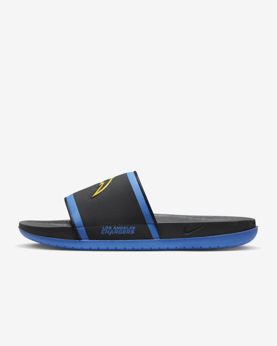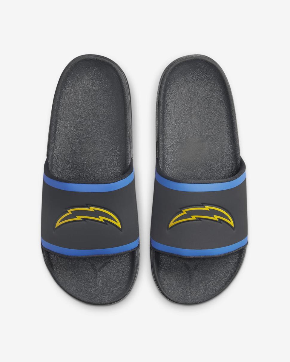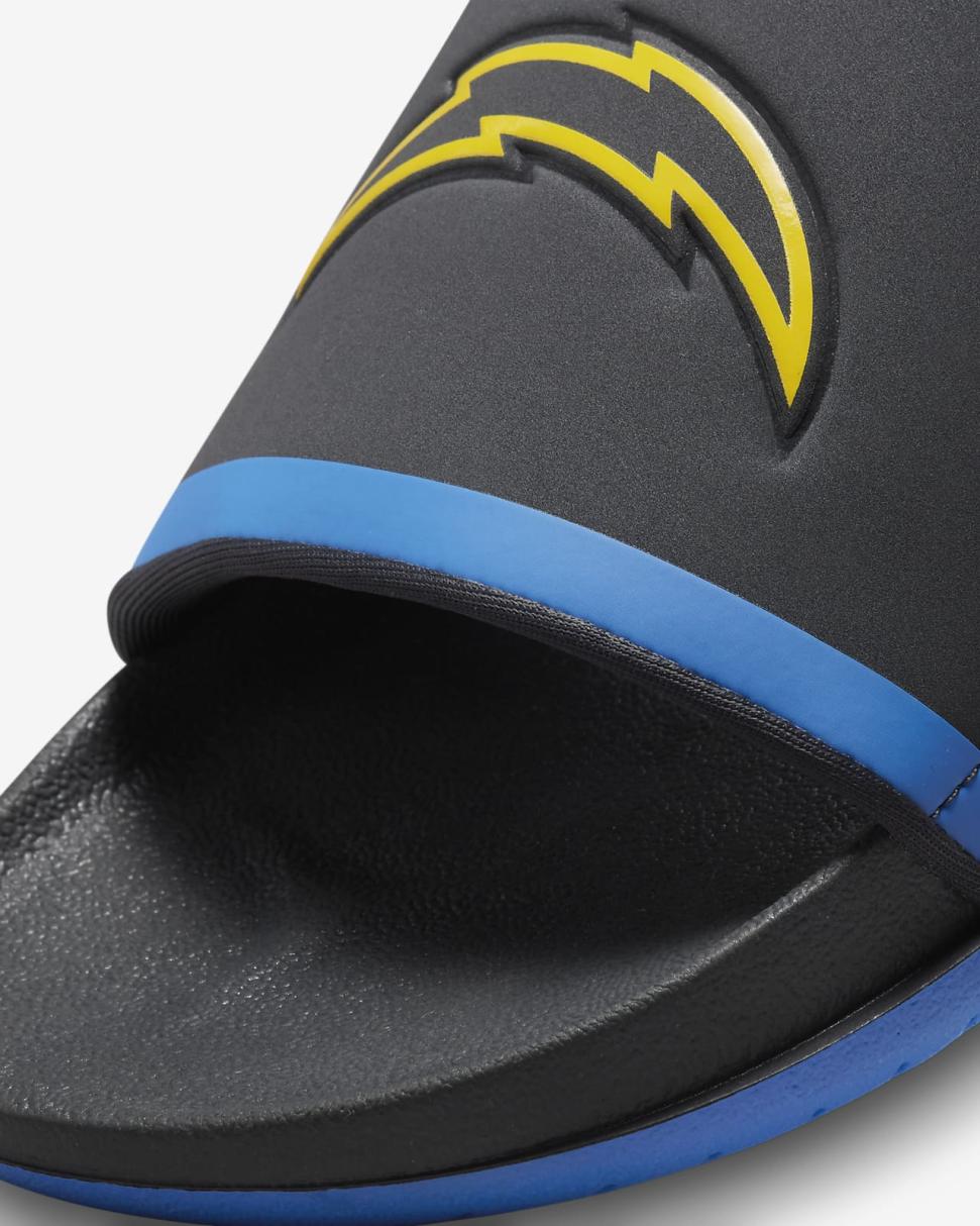 Cheer your team to victory in comfort with the Nike Offcourt (NFL Los Angeles Chargers) Slide. A cushy synthetic leather strap features your team’s logo, while an innovative foam midsole makes this slide so comfy, you’ll never want to take it off.