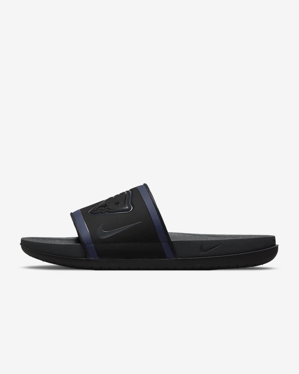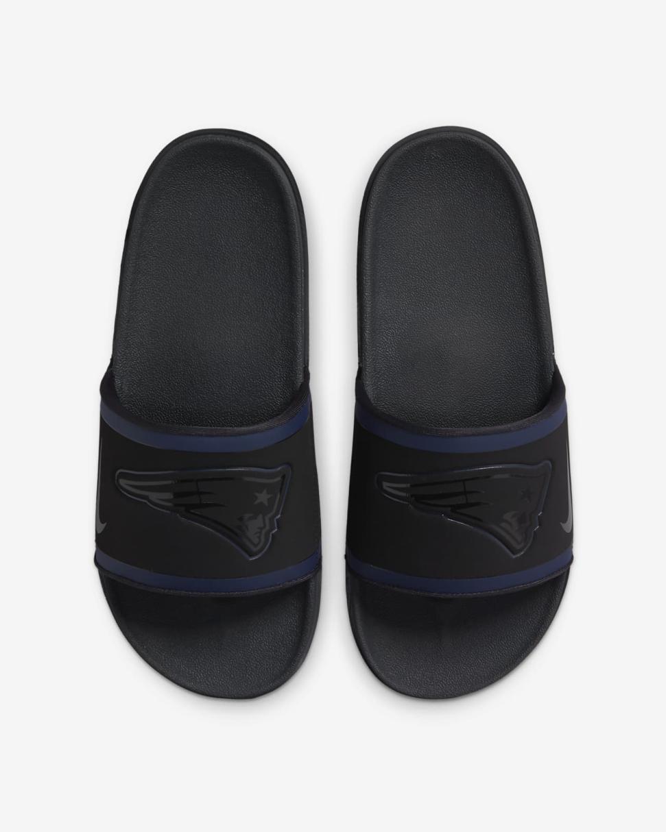 Cheer your team to victory in comfort with the Nike Offcourt (NFL New England Patriots) Slide. A cushy synthetic leather strap features your team’s logo, while an innovative foam midsole makes this slide so comfy, you’ll never want to take it off.