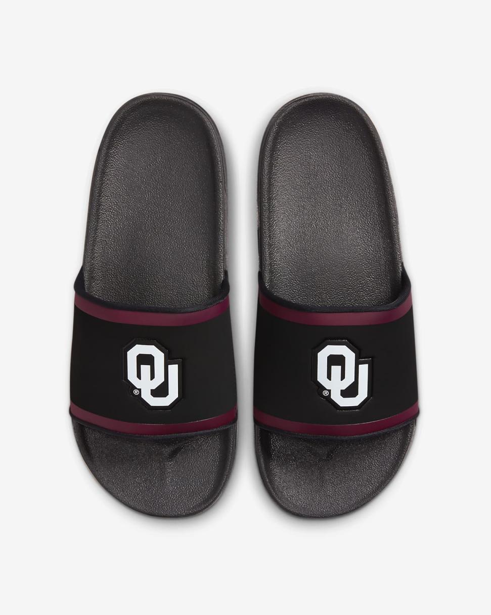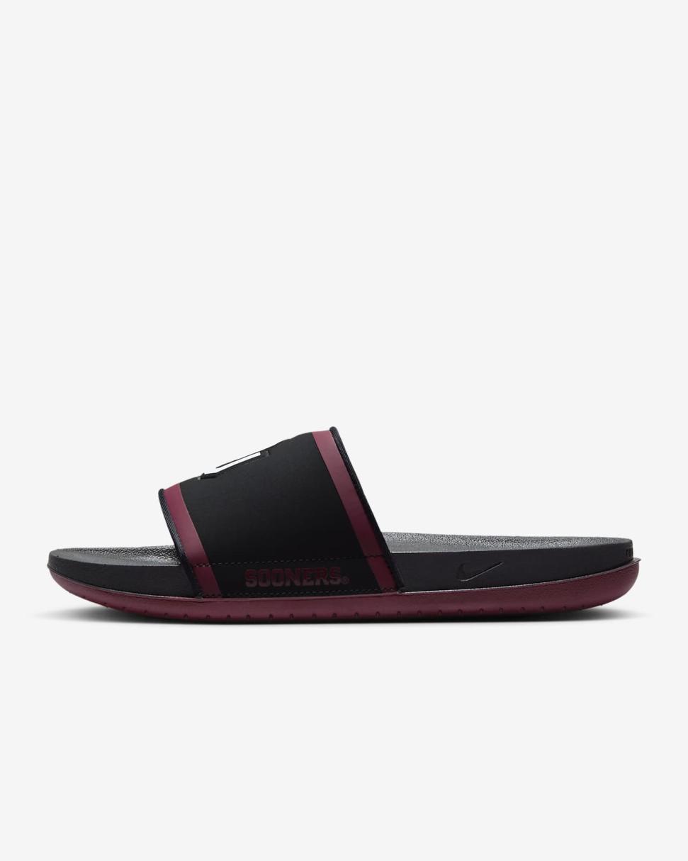 Cheer your team to victory in comfort with the Nike Offcourt (Oklahoma) Slide. A cushy synthetic leather strap features your team’s logo, while an innovative foam midsole makes this slide so comfy, you’ll never want to take it off.