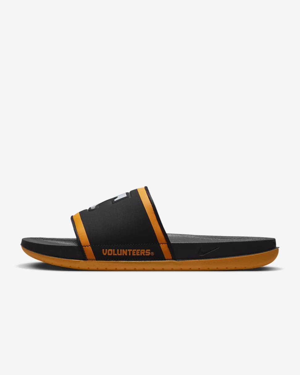 Cheer your team to victory in comfort with the Nike Offcourt (Tennessee) Slide. A cushy synthetic leather strap features your team’s logo, while an innovative foam midsole makes this slide so comfy, you’ll never want to take it off.