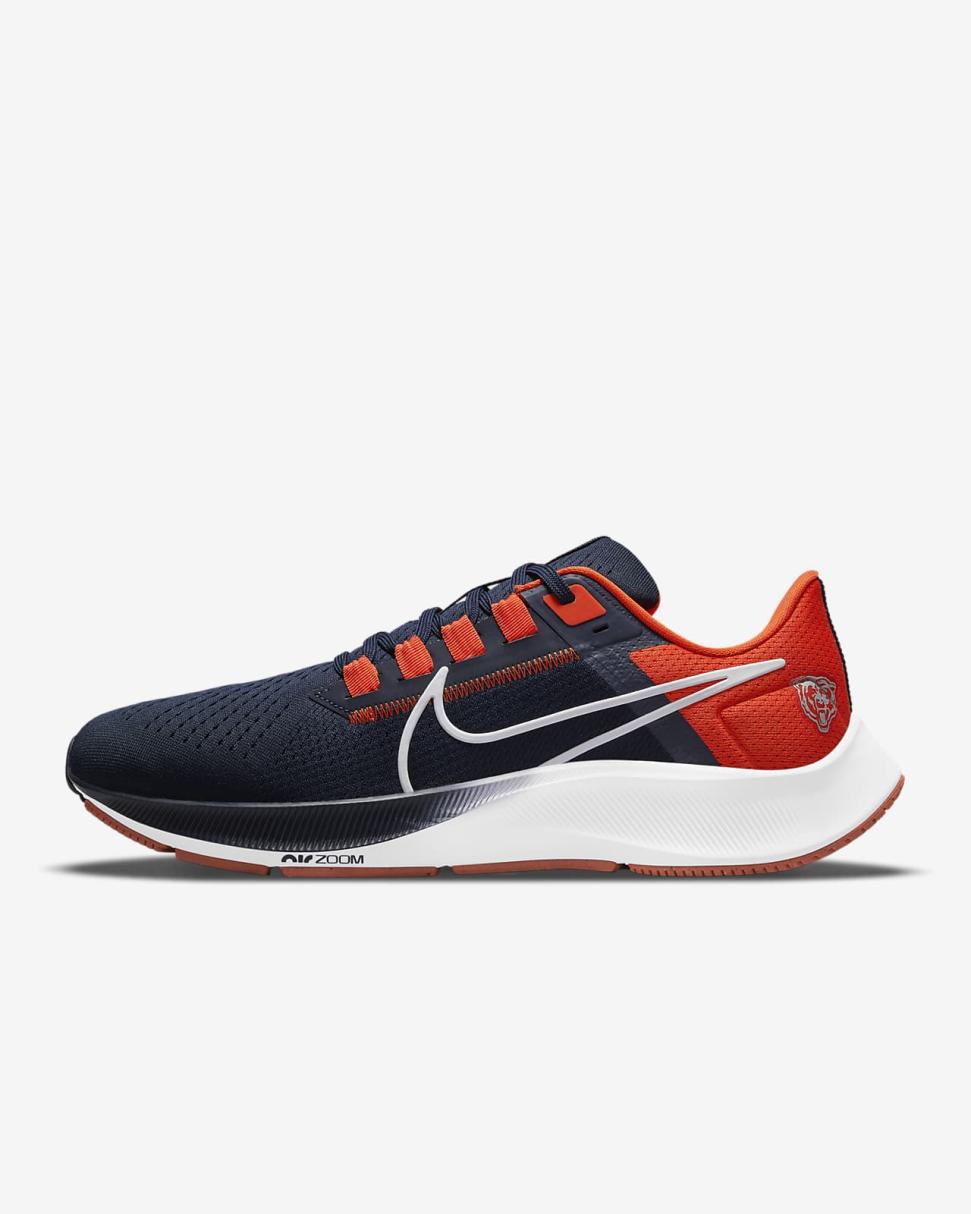 Your workhorse with wings returns. The Nike Air Zoom Pegasus 38 (NFL Chicago Bears) puts a spring in your step while showing love for your team. Breathable mesh in the upper combines the comfort and durability you want with a wider fit at the toes.