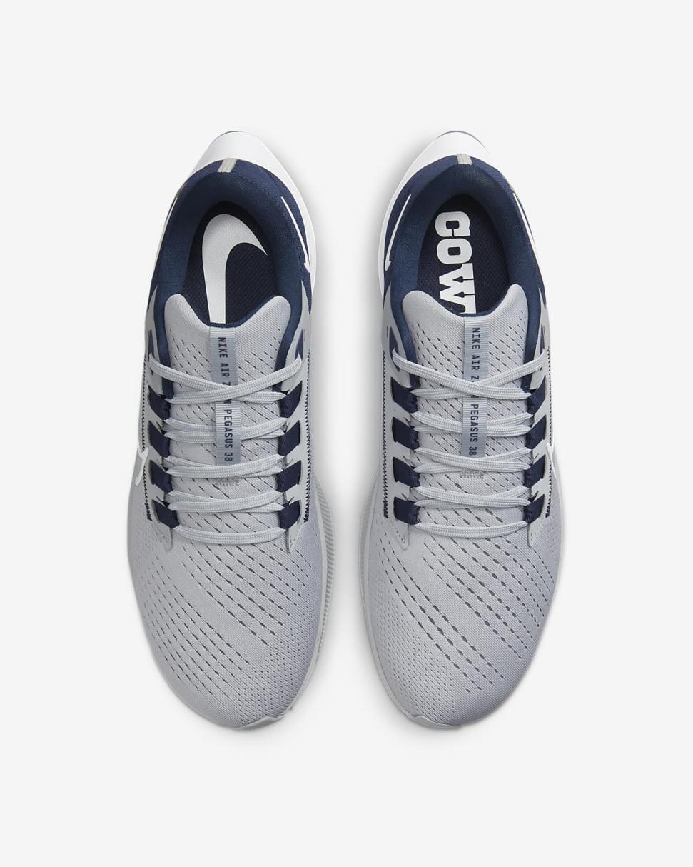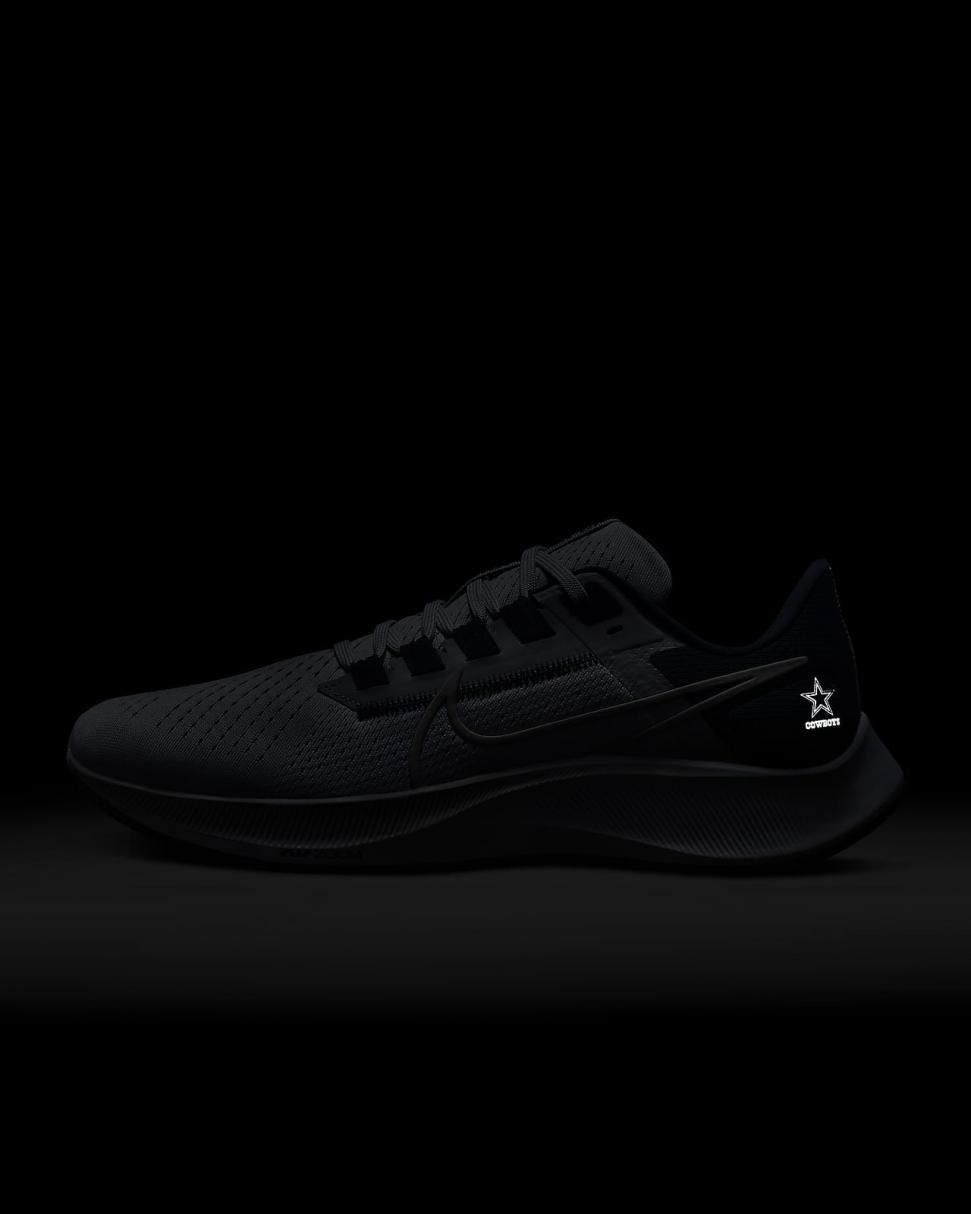 Your workhorse with wings returns. The Nike Air Zoom Pegasus 38 (NFL Dallas Cowboys) puts a spring in your step while showing love for your team. Breathable mesh in the upper combines the comfort and durability you want with a wider fit at the toes.