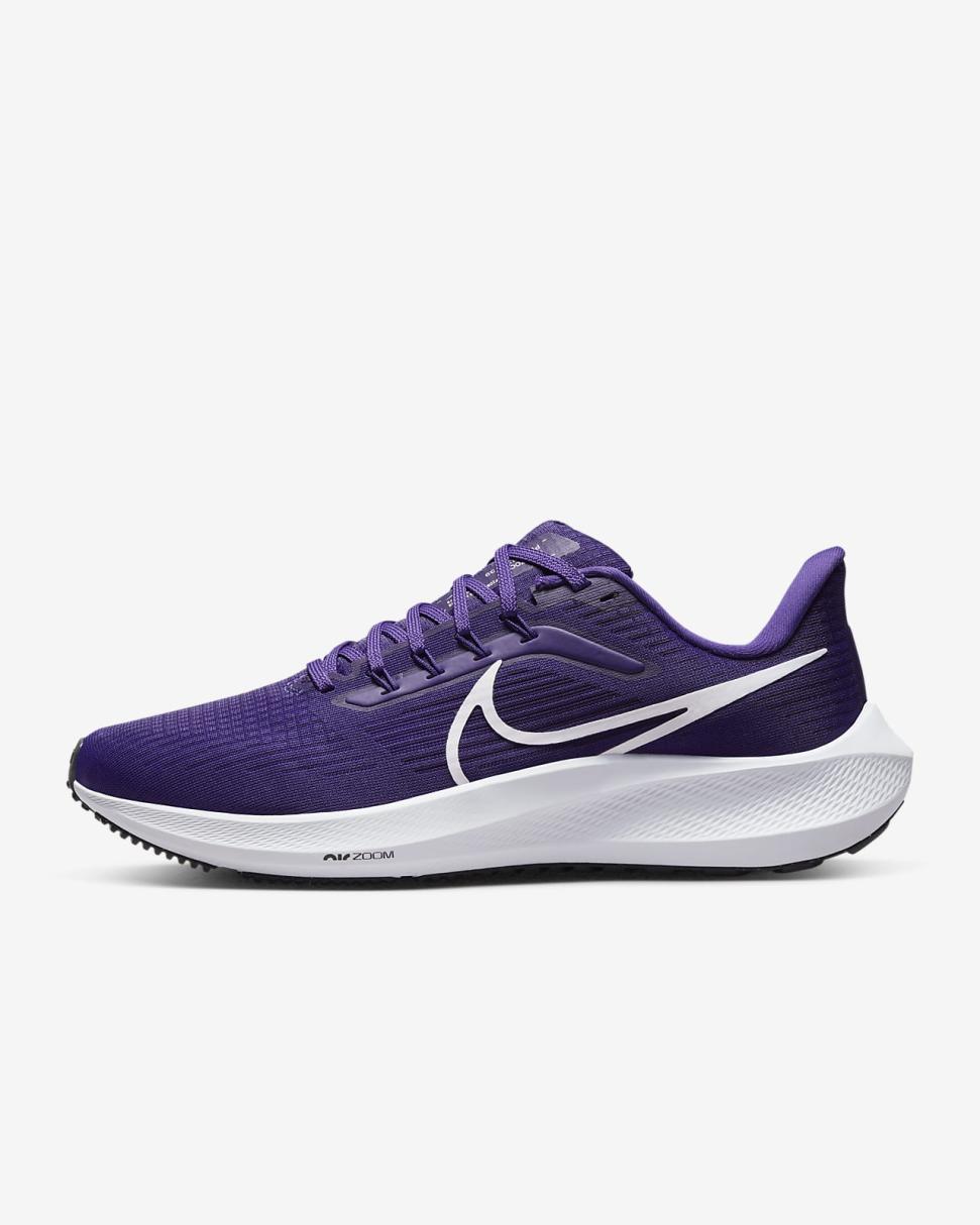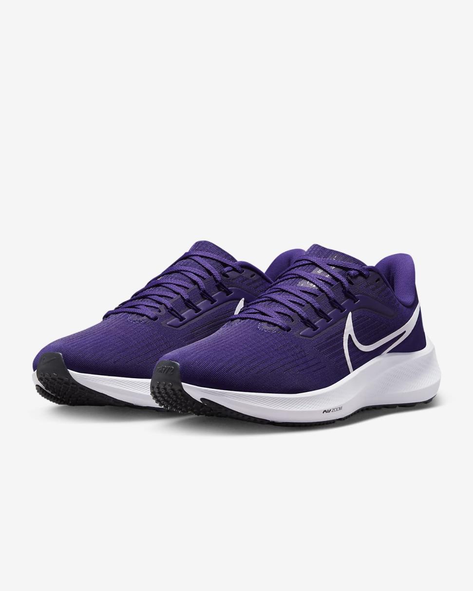 Let the Nike Pegasus 39, a balanced and energized ride for any run, help you ascend to new heights. A supportive sensation helps keep your foot contained, while underfoot cushioning combines with 2 Zoom Air units to add a pop to your step as you transition from heel to toe. Your trusted workhorse with wings is back. Time to fly.