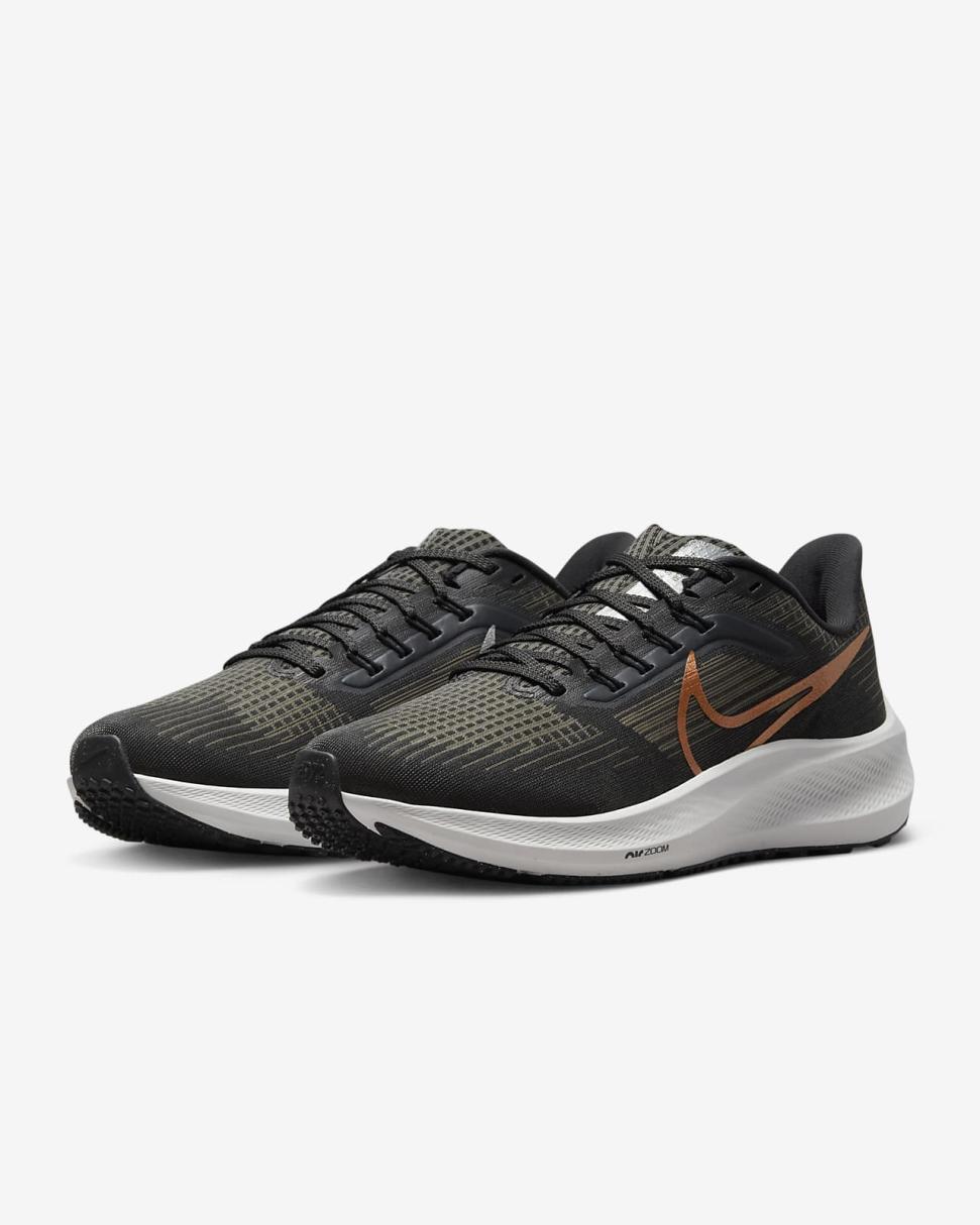 Let the Nike Pegasus 39 help you ascend to new heights. More lightweight up top than the Pegasus 38 and ideal to wear in any season, it has a supportive sensation to help keep your feet contained, while underfoot cushioning and double Zoom Air units (1 more than the Peg 38) give you an extra pop to your step. Your trusted workhorse with wings is back. Time to fly.