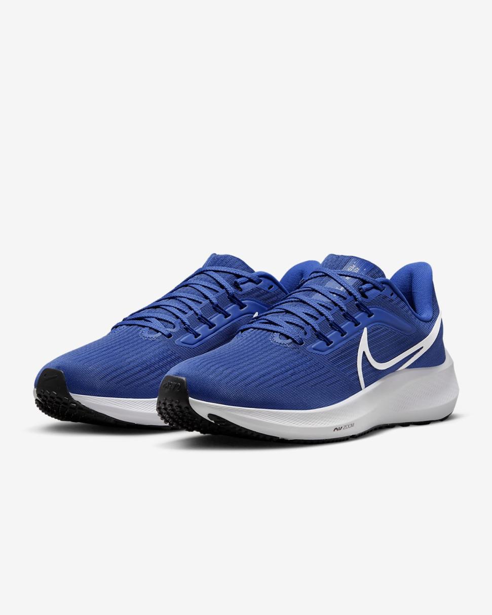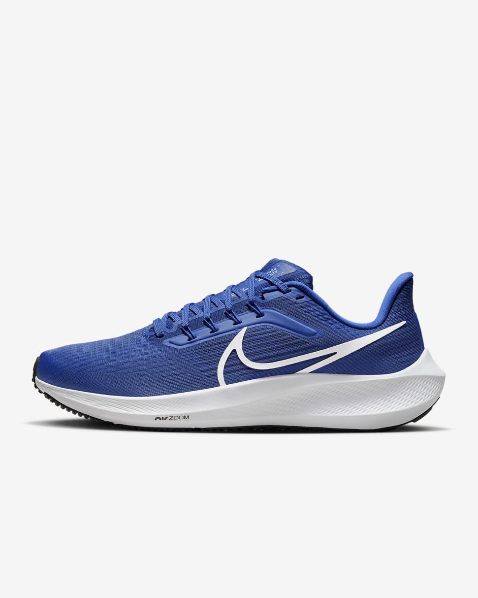 Let the Nike Pegasus 39, a balanced and energized ride for any run, help you ascend to new heights. A supportive sensation helps keep your foot contained, while underfoot cushioning combines with 2 Zoom Air units to add a pop to your step as you transition from heel to toe. Your trusted workhorse with wings is back. Time to fly.