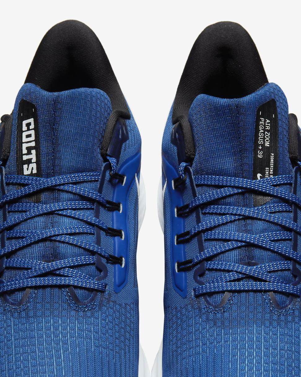 Running is your daily ritual, with every step taking you closer to your personal goal. Let the Nike Pegasus 39 (NFL Indianapolis Colts) help you ascend to new heights with its comfortable, intuitive design. A supportive sensation keeps your foot contained, while underfoot cushioning combines with 2 Zoom Air units to add a pop to your step as you transition from heel to toe. Your trusted workhorse with wings is back—time to fly.