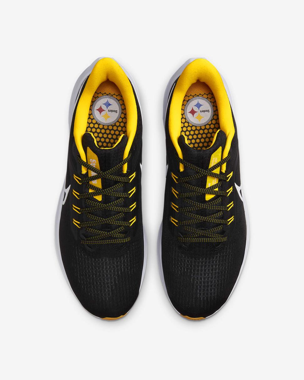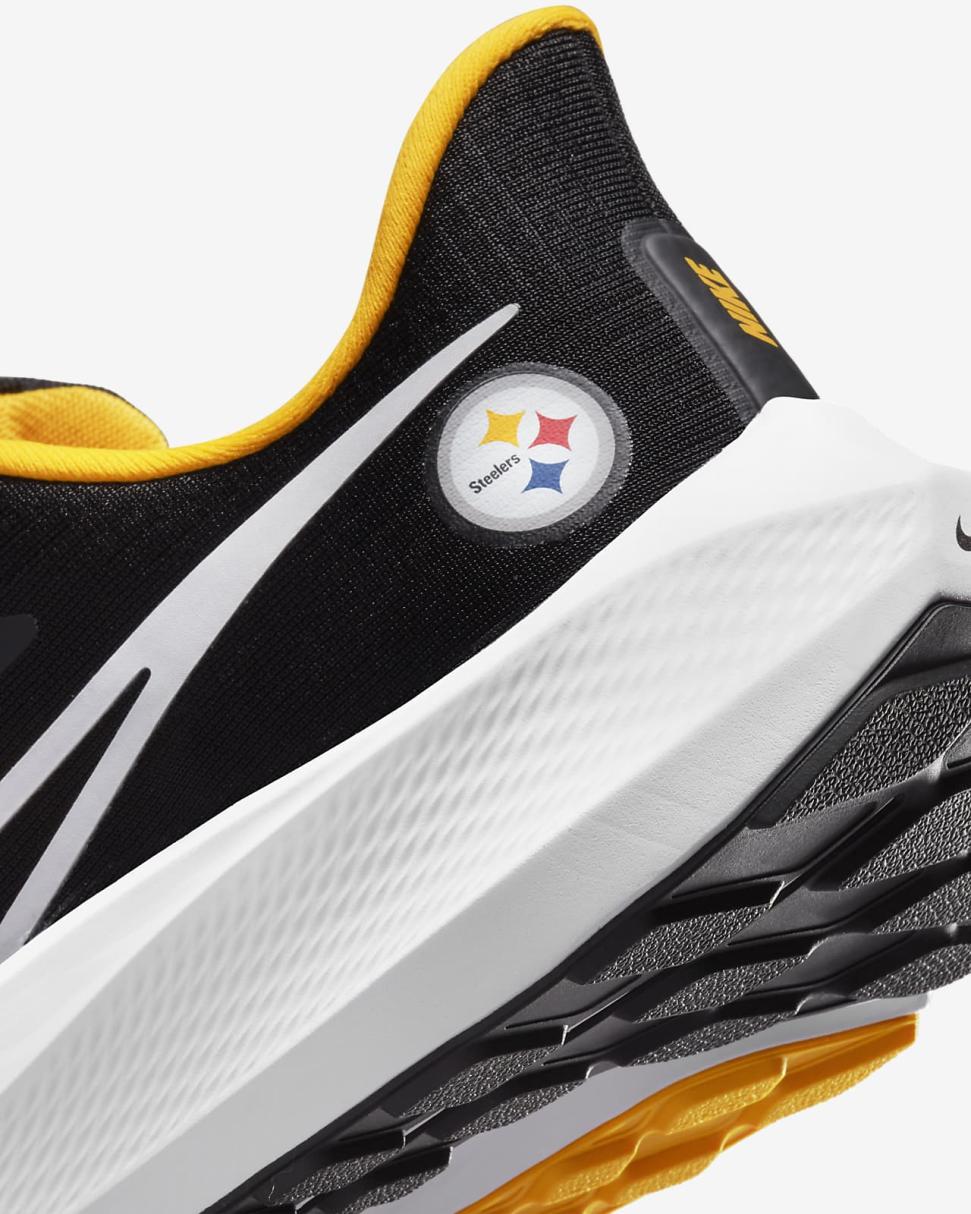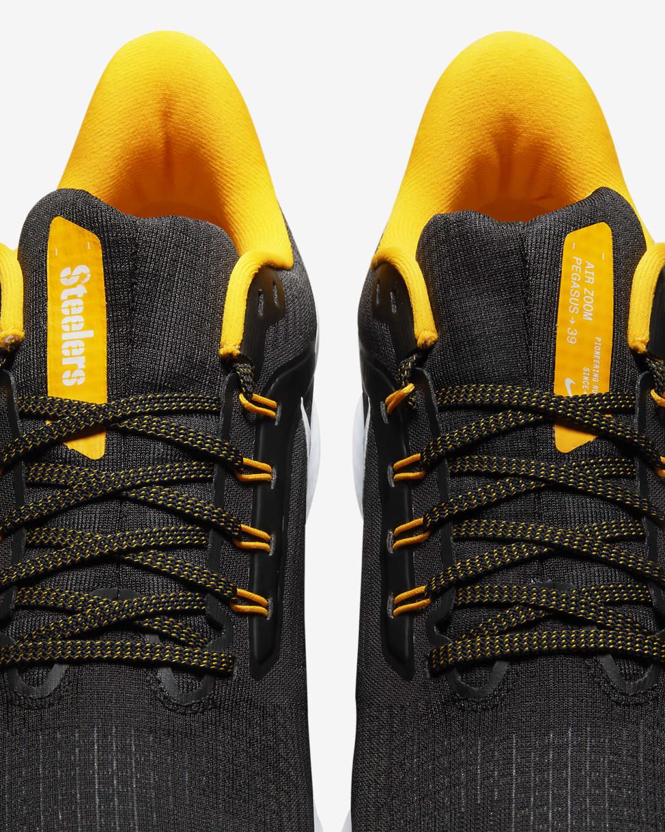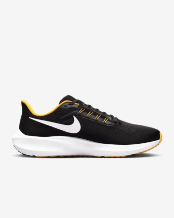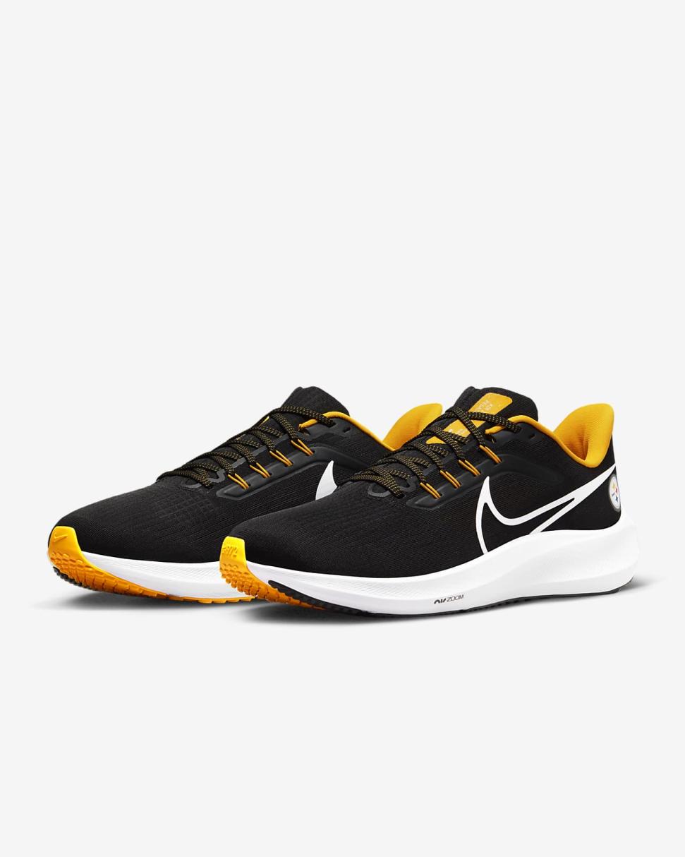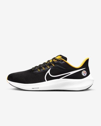 Running is your daily ritual, with every step taking you closer to your personal goal. Let the Nike Pegasus 39 (NFL Pittsburgh Steelers) help you ascend to new heights with its comfortable, intuitive design. A supportive sensation keeps your foot contained, while underfoot cushioning combines with 2 Zoom Air units to add a pop to your step as you transition from heel to toe. Your trusted workhorse with wings is back—time to fly.