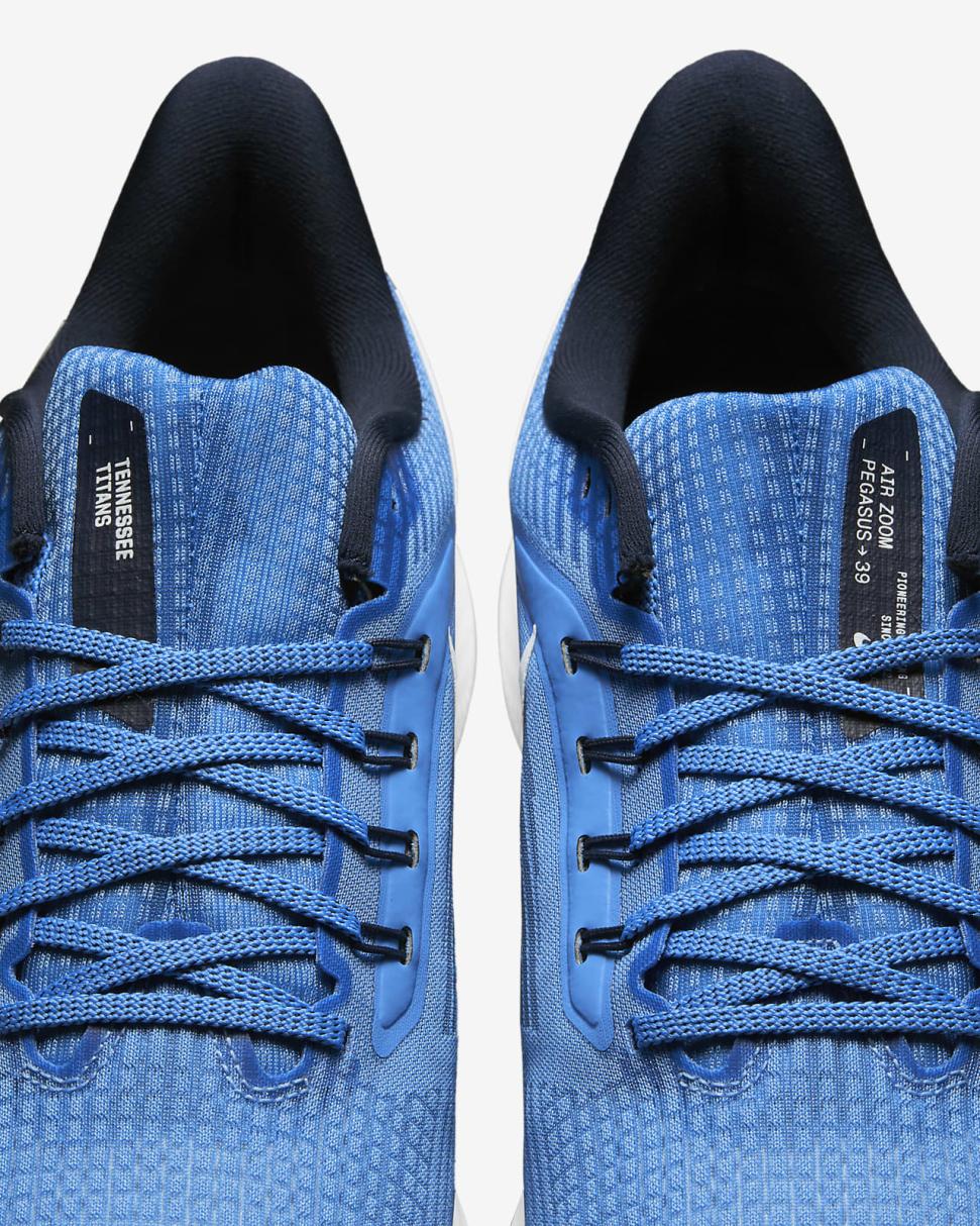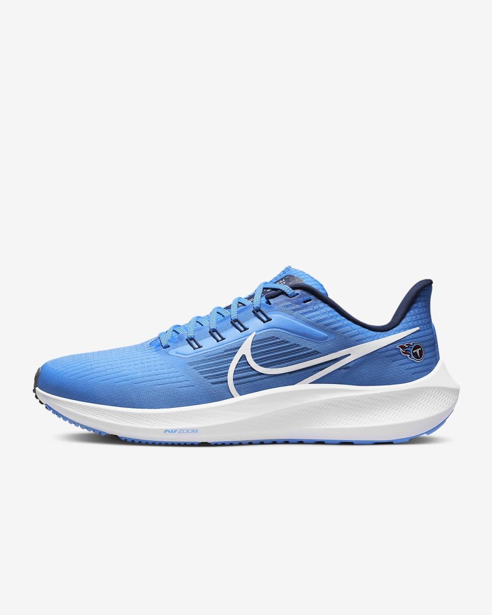 Running is your daily ritual, with every step taking you closer to your personal goal. Let the Nike Pegasus 39 (NFL Tennessee Titans) help you ascend to new heights with its comfortable, intuitive design. A supportive sensation keeps your foot contained, while underfoot cushioning combines with 2 Zoom Air units to add a pop to your step as you transition from heel to toe. Your trusted workhorse with wings is back—time to fly.