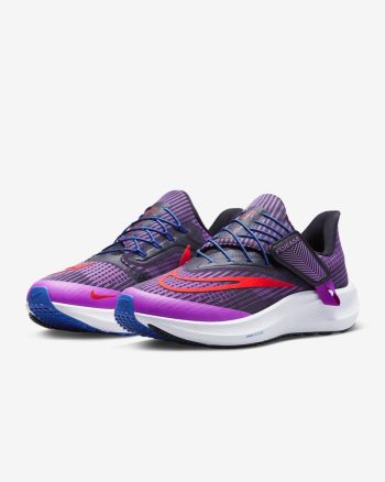 Let the Nike Pegasus FlyEase, a balanced and energized ride for any run, help you ascend to new heights. A supportive sensation helps keep your foot contained, while underfoot Air adds a pop to your step as you transition from heel to toe. Nike FlyEase technology acts as a strap, helping secure the fit. Your trusted workhorse with wings is back. Time to fly.