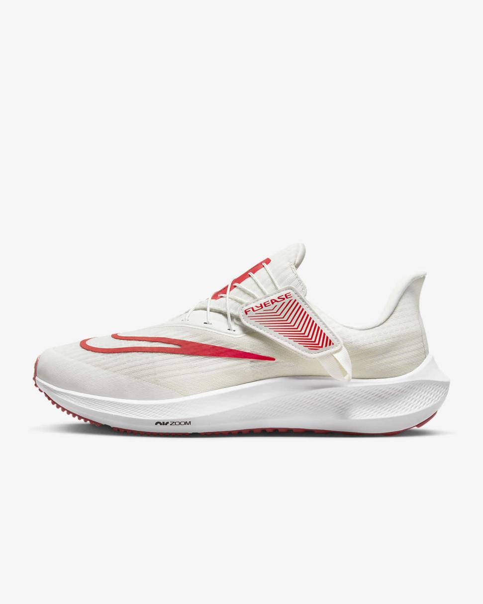 Let the Nike Pegasus FlyEase, a balanced and energized ride for any run, help you ascend to new heights. A supportive sensation helps keep your foot contained, while underfoot Air adds a pop to your step as you transition from heel to toe. Nike FlyEase technology acts as a strap, helping secure the fit. Your trusted workhorse with wings is back. Time to fly.