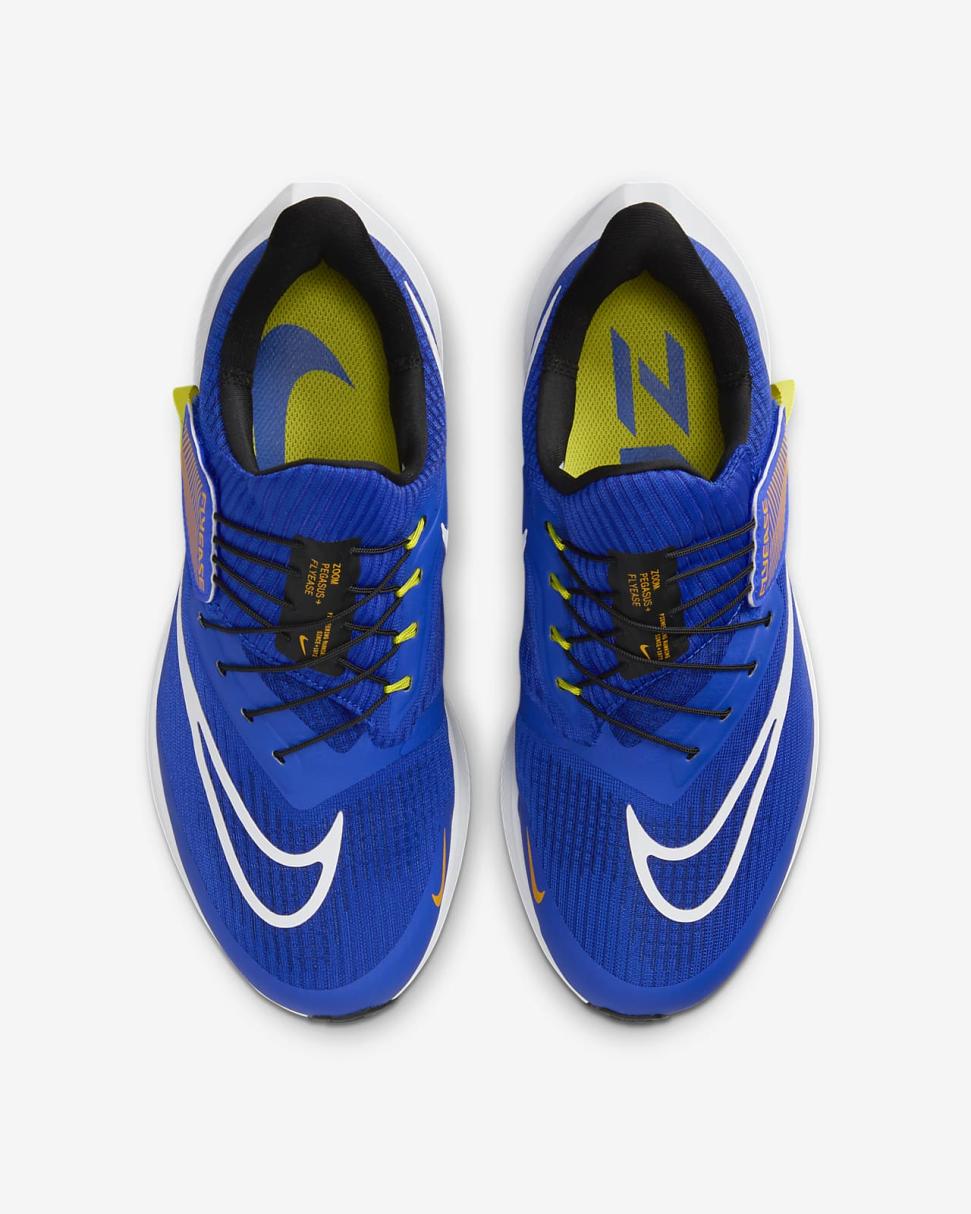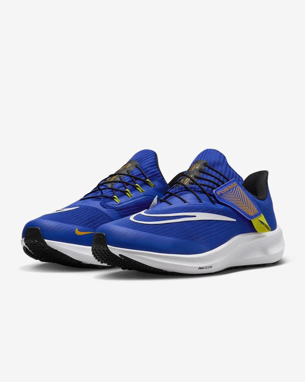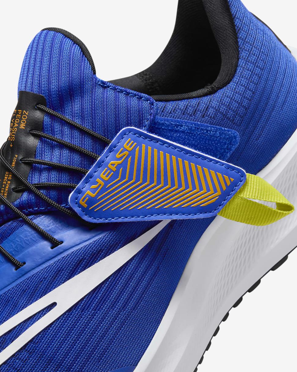 Let the Nike Pegasus FlyEase, a balanced and energized ride for any run, help you ascend to new heights. A supportive sensation helps keep your foot contained, while underfoot Air adds a pop to your step as you transition from heel to toe. Nike FlyEase technology acts as a strap, helping secure the fit. Your trusted workhorse with wings is back. Time to fly.