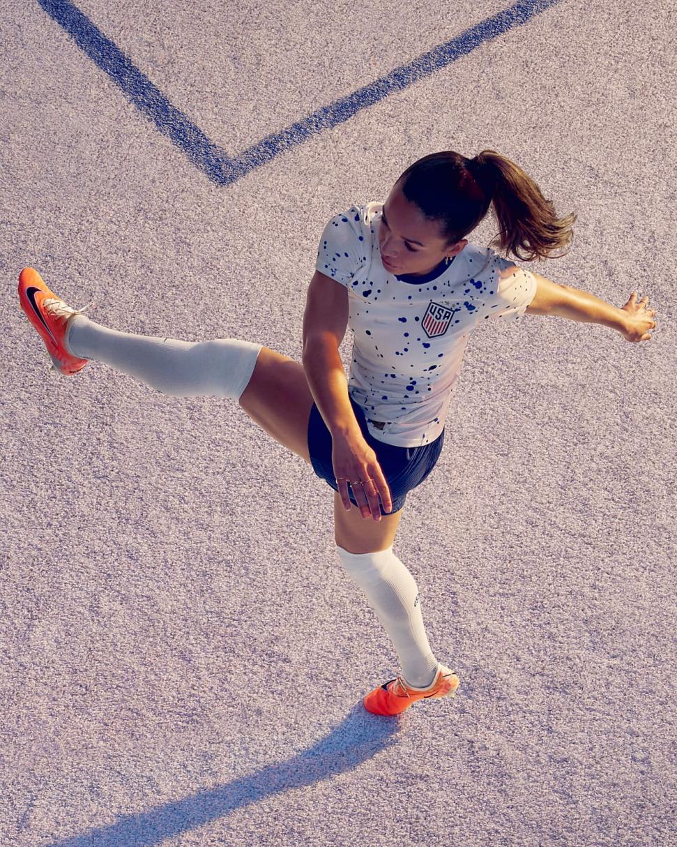 Step into the dawn of a new day and put the globe on notice about your skills. A flashy iridescent plate, futuristic graphic and vibrant colors resembling a gradient sunrise speak to the gravitational power of the women’s game, a full-fledged force capable of uniting us on and off the field. Designed for those obsessed with perfecting their craft, it has revolutionary Nike Gripknit for better touch on the ball in an intuitive design that's made to optimize performance both when striking and during close control.