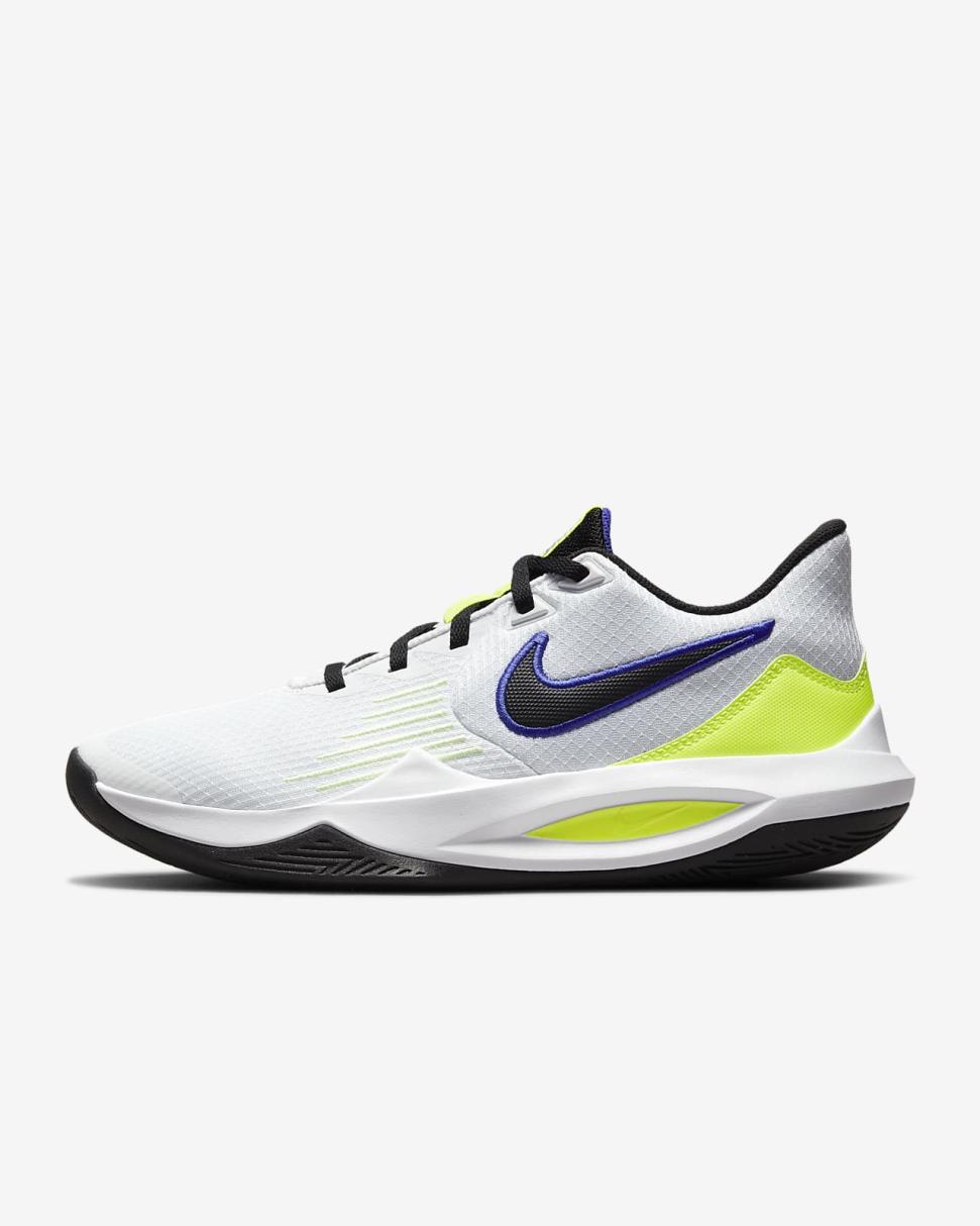 A quick first step makes all the difference. The Nike Precision 5 locks in your foot with structured materials and cushions with resilient foam. Stripped down and sculpted, the shape allows quick cuts and hard banks when you're angling for an advantage.