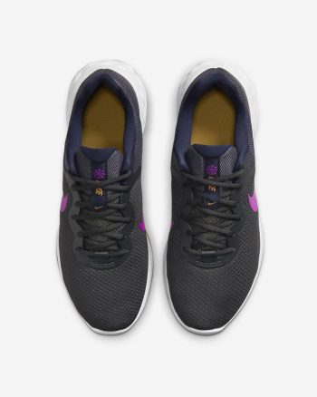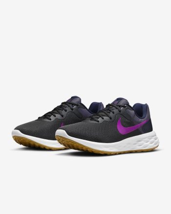 A foam midsole delivers a softer ride than the Revolution 5. The outsole has a computer-generated design that creates a natural piston effect as you run, providing more cushioning and flexibility. They combine for durable traction.
