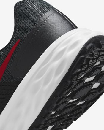 A foam midsole delivers a softer ride than the Revolution 5. The outsole has a computer-generated design that creates a natural piston effect as you run, providing more cushioning and flexibility. They combine for durable traction.