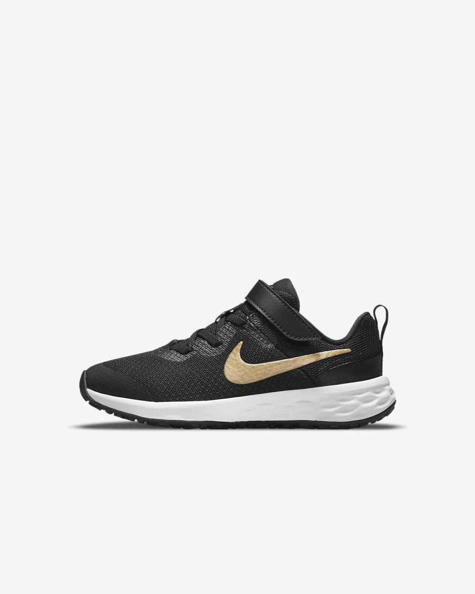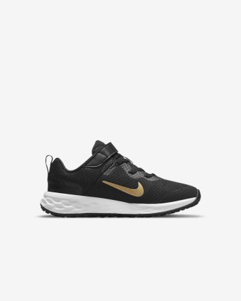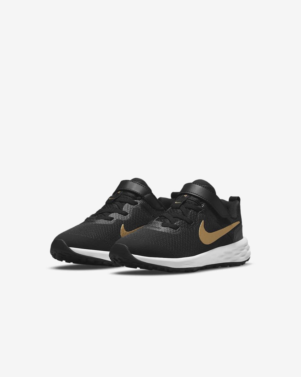Nike Revolution 6 Black/White/Metallic Gold | Kids Nike Running