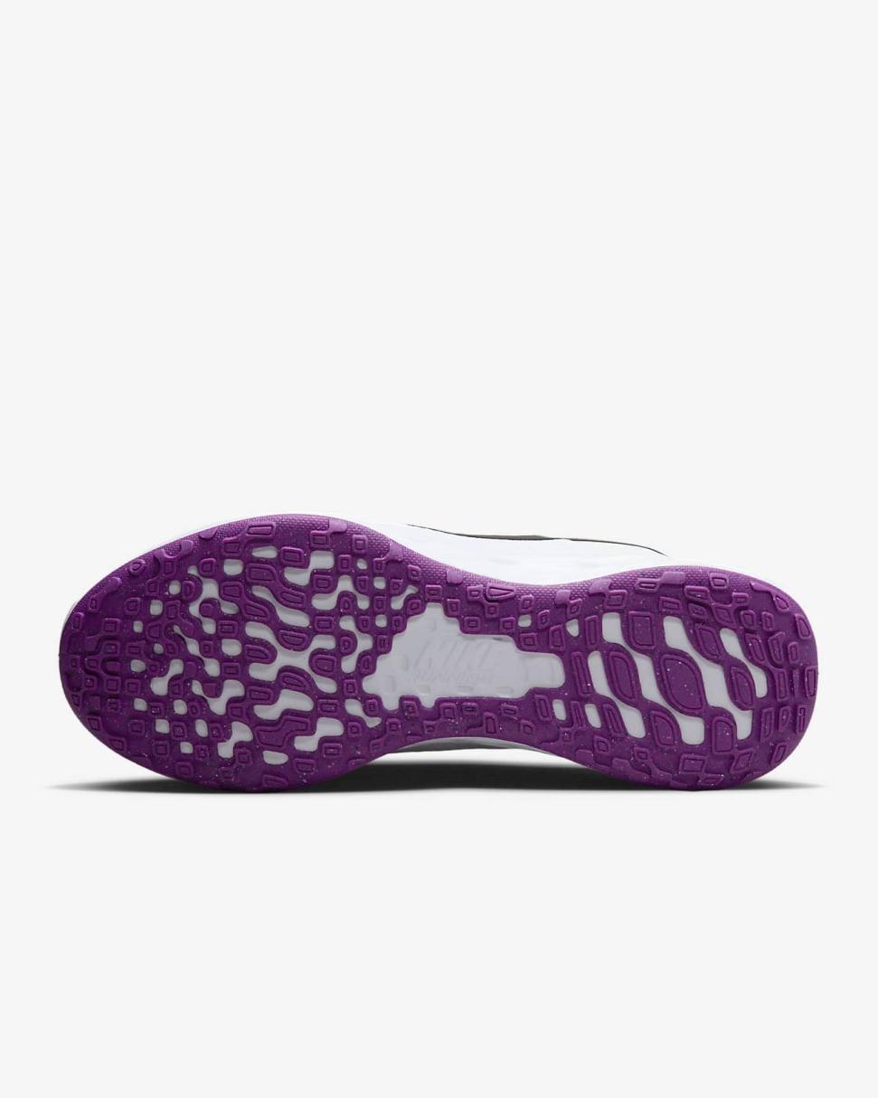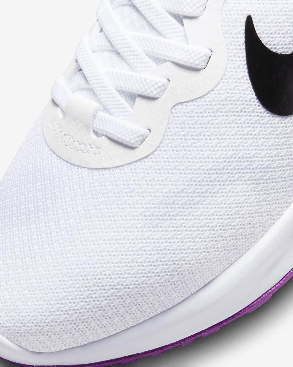 A full foam midsole delivers a softer ride than the Revolution 5. The outsole has a computer-generated design that creates a natural piston effect as you run, providing more cushioning and flexibility. They combine for durable traction.