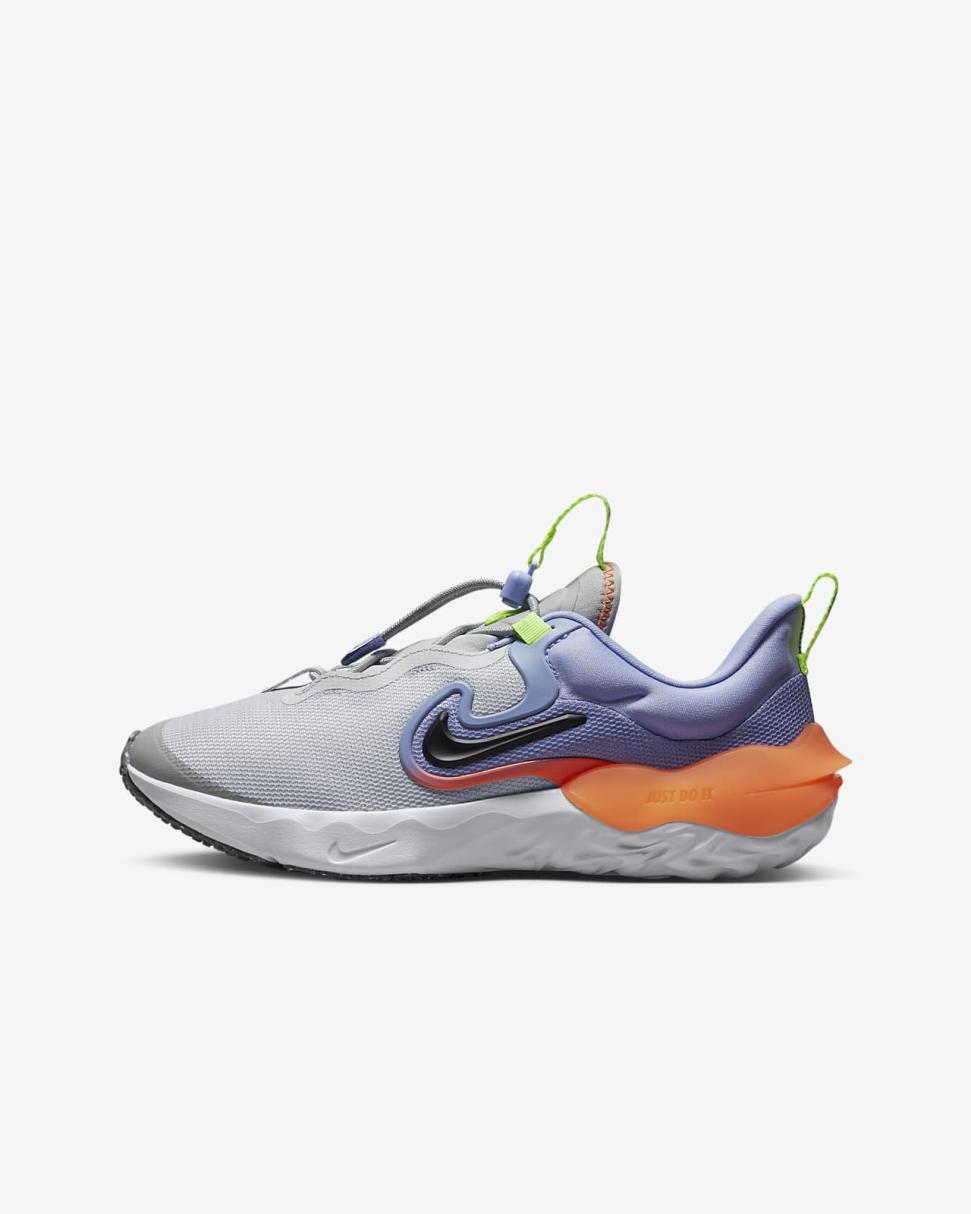 Are you a kid who likes to run the moment you get out of bed? Whether it's heading to school, recess or favorite afternoon activities, you know how much fun running is. The Nike Run Flow helps you do all that with supersoft and responsive cushioning underfoot. This lightweight and breathable shoe also has easy-to-use toggle lacing so you can get out the door fast because why does fun have to wait?