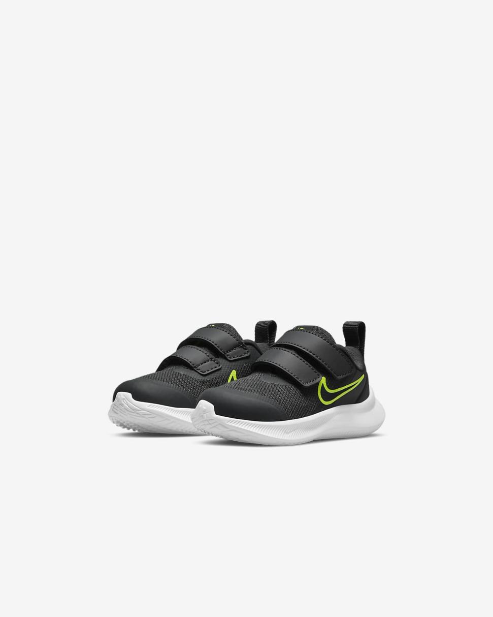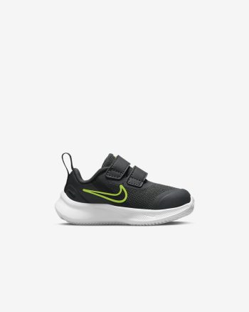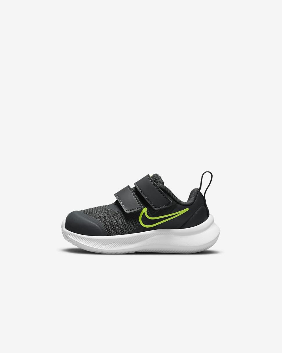 We've got some serious star power here. The Nike Star Runner 3 shoots for the sky with play-ready shoes made for each crawl to every growing step. We've added 2 straps for easy takeoff, plus supersoft foam and lots of flexibility to rocket up the comfort. Designed with the Earth in mind, they're made with at least 20% recycled content by weight.