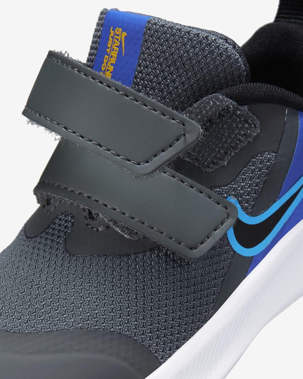 We've got some serious star power here. The Nike Star Runner 3 shoots for the sky with play-ready shoes made for each crawl to every growing step. We've added 2 straps for easy takeoff, plus supersoft foam and lots of flexibility to rocket up the comfort. Designed with the Earth in mind, they're made with at least 20% recycled content by weight.